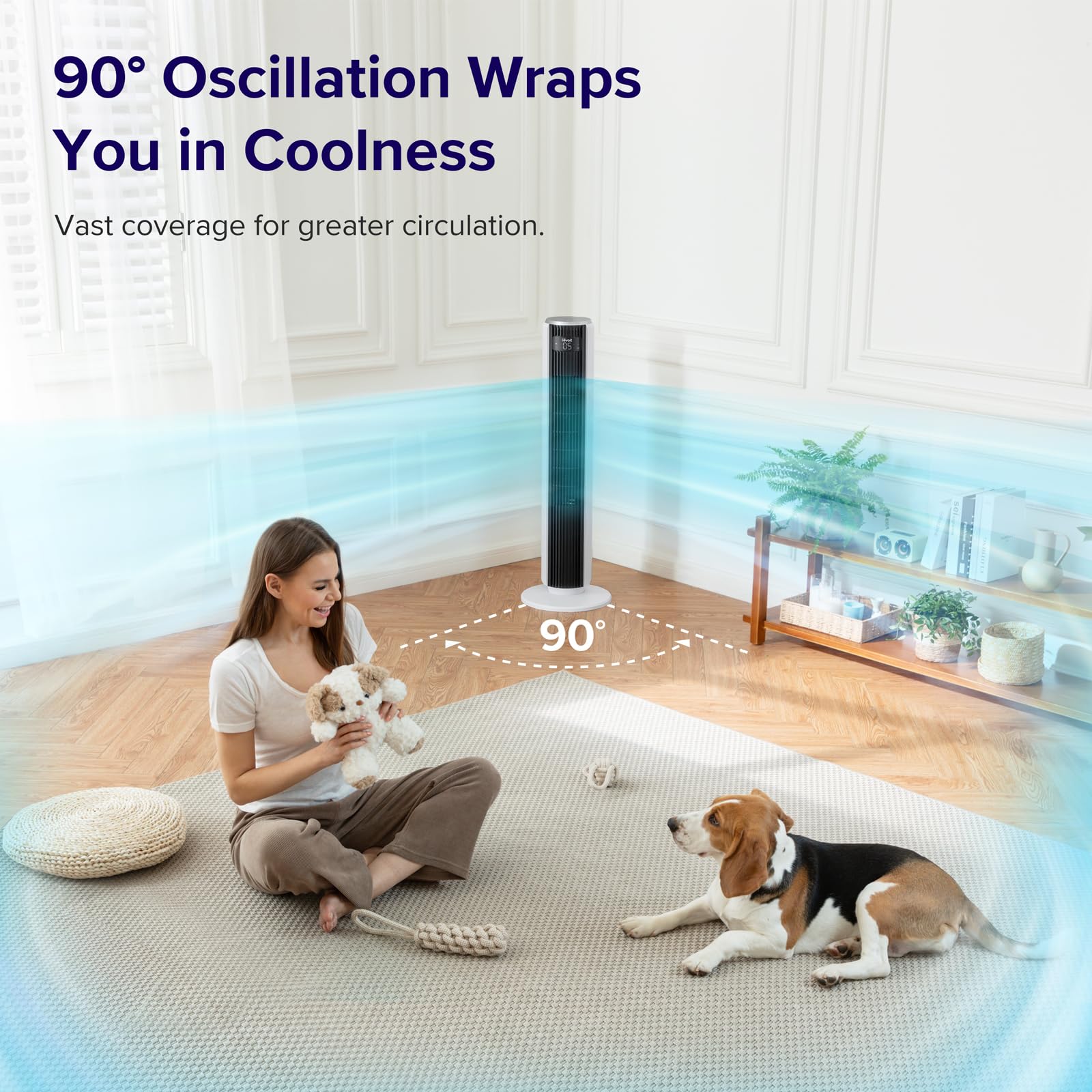 LEVOIT Tower Fan for Bedroom, Standing Fan that Blows Cold Air for Home, 28dB Quiet for Sleep, Remote, 90° Oscillation, 12H Timer, 25ft/s Velocity, 5 Speeds, 4 Modes, Bladeless 36 inch, White