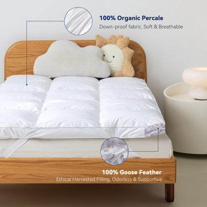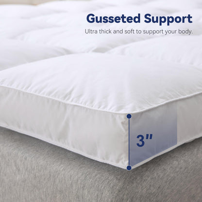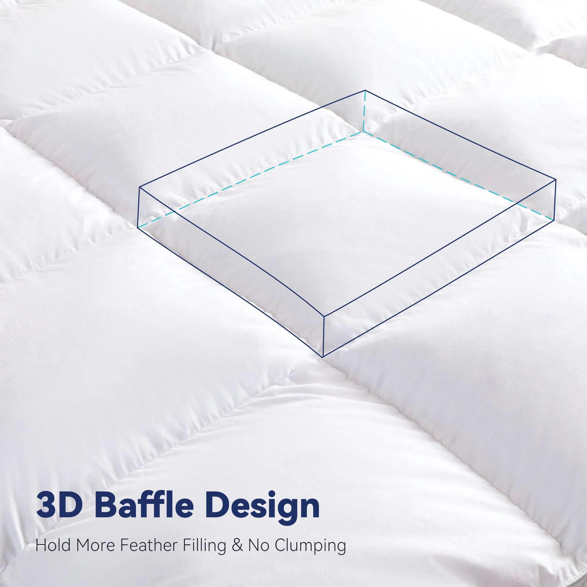 - 【Extra Thick】3” ultra thick mattress topper conforms to your body curves, especially your shoulder, back and hip. Adapt to different sleeping positions. Rejuvenate and prolong the lifespan of your old mattress. Goose feather fill with RDS certified provides soft support when you lie on the mattress topper.