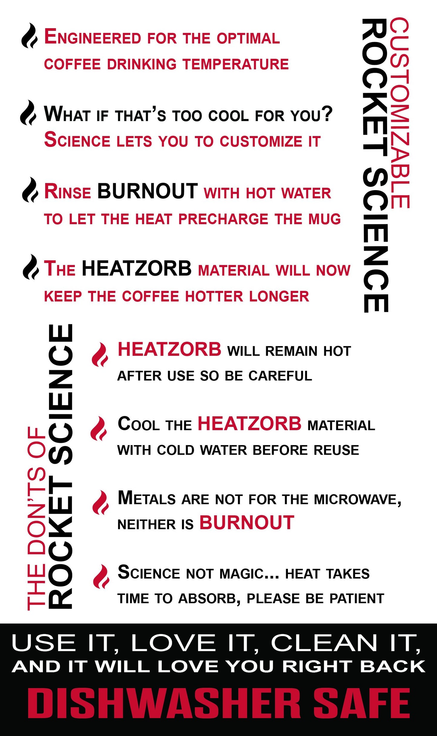 - Innovative Design, Precision Engineering – Developed by aerospace engineers, Burnout features a heat-absorbing core designed for an optimal drinking experience. Unlike traditional insulated mugs that keep liquids too hot for too long, Burnout regulates and sustains an ideal temperature—ensuring every sip is enjoyable. No power, no hassle—just a travel mug built for performance and durability. Thoughtfully designed for those who take their coffee seriously.