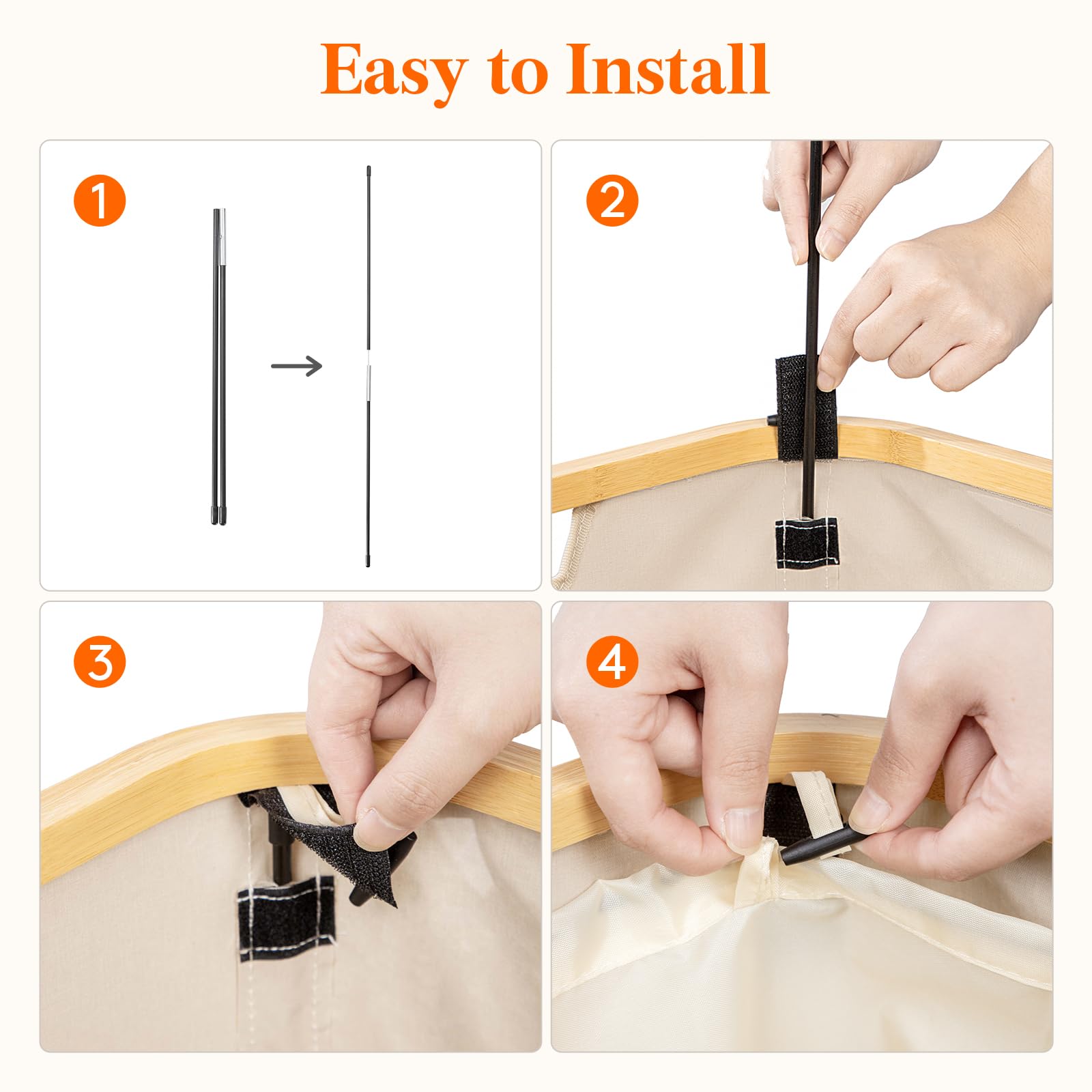 - Easy to Install and Fold: Our clothes hamper with lid is designed with easy assembly in mind. Just insert 4 reinforced fiber rods into the cornor double-stitch pole sleeves and the basket will stand upright. Likewise, remove the poles when not in use and fold for easy storage