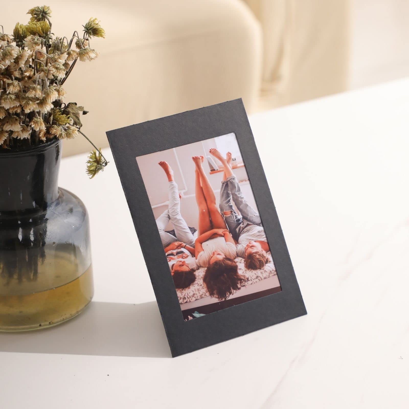 - ✏️【High Quality Paper Picture Frames】– Made of Acid free high quality thick cardstock. Each paper picture frame fits 4x6 inch photos; display window measures 3.5 x 5 inches & frame size: 4.7 x 7 inches. Frame was made just right, so that the photo inside would not shift around.