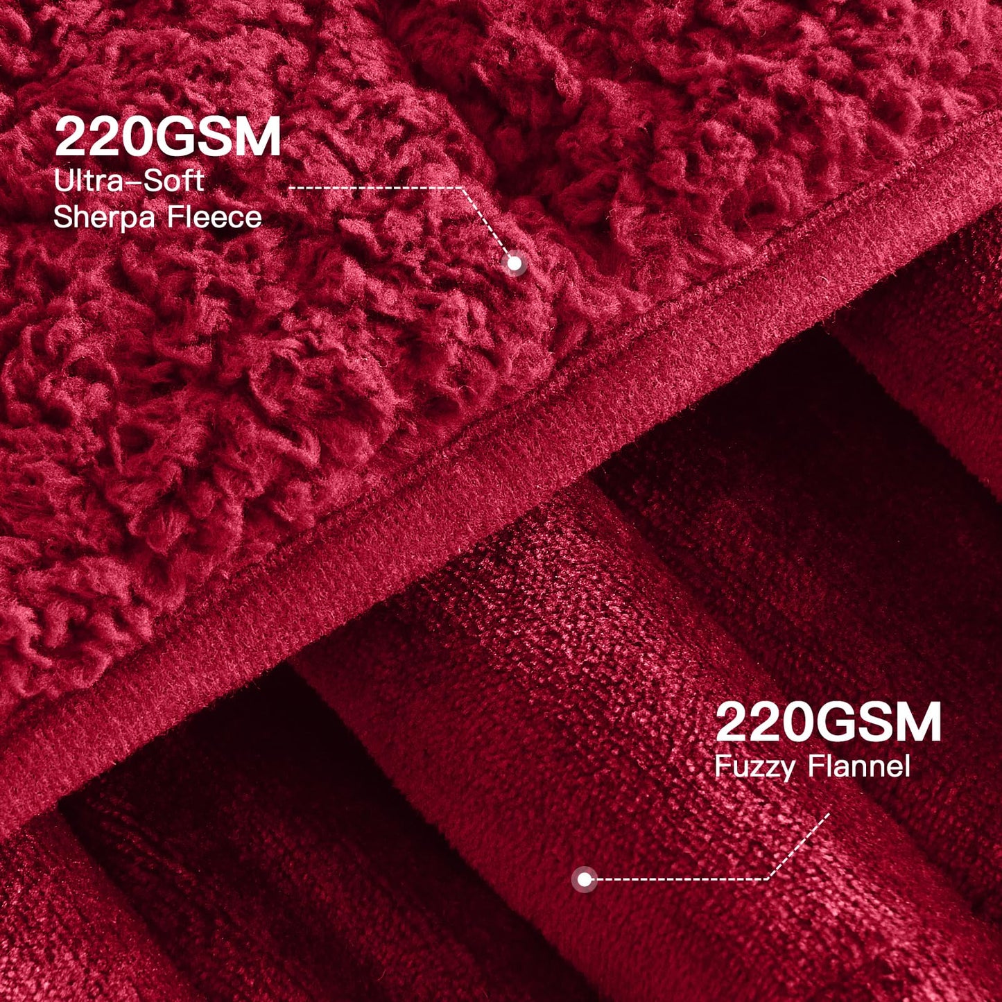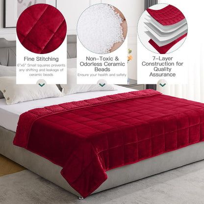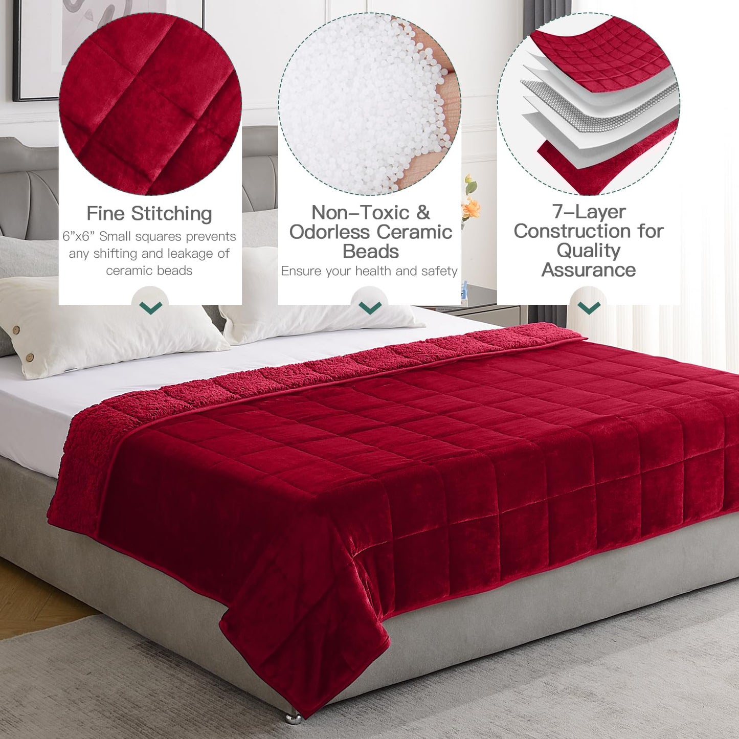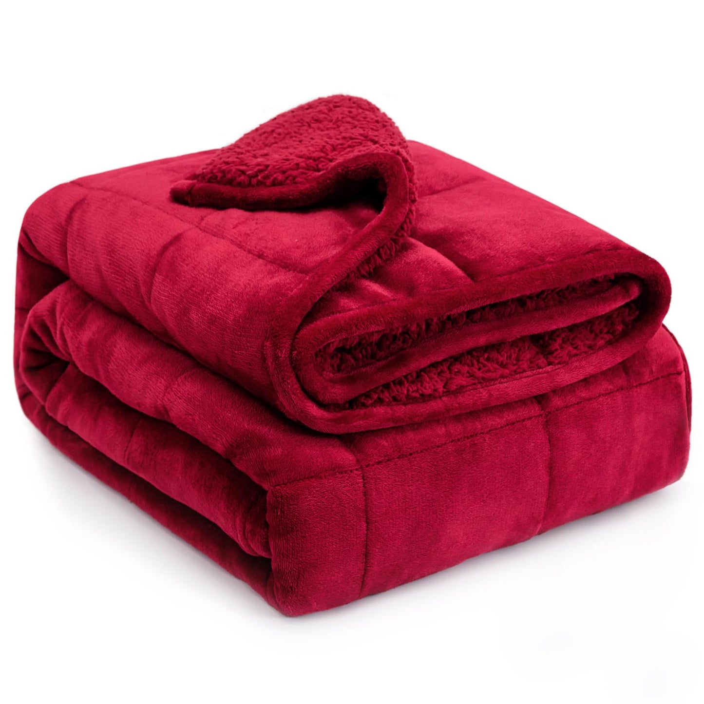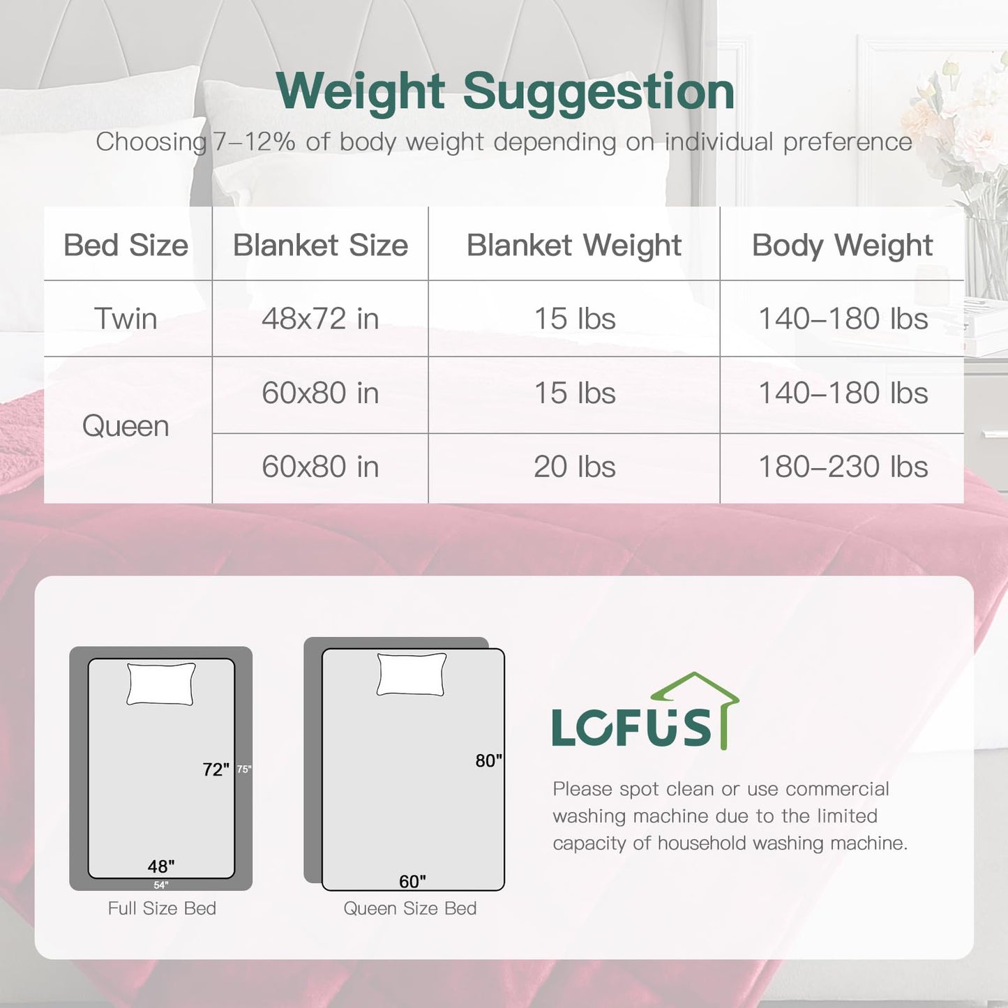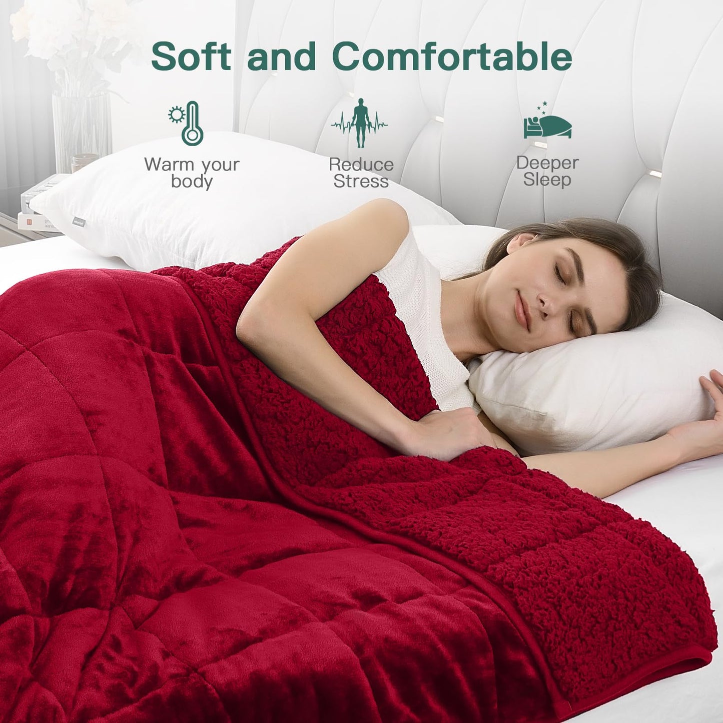 Lofus Sherpa Fleece Weighted Blanket 20 lbs Heavy Blanket with Soft Plush Flannel Reversible Queen-Size Super Soft Extra Warm Cozy Fluffy Blanket 60 x 80 inches for Adult Bed Couch, Burgundy