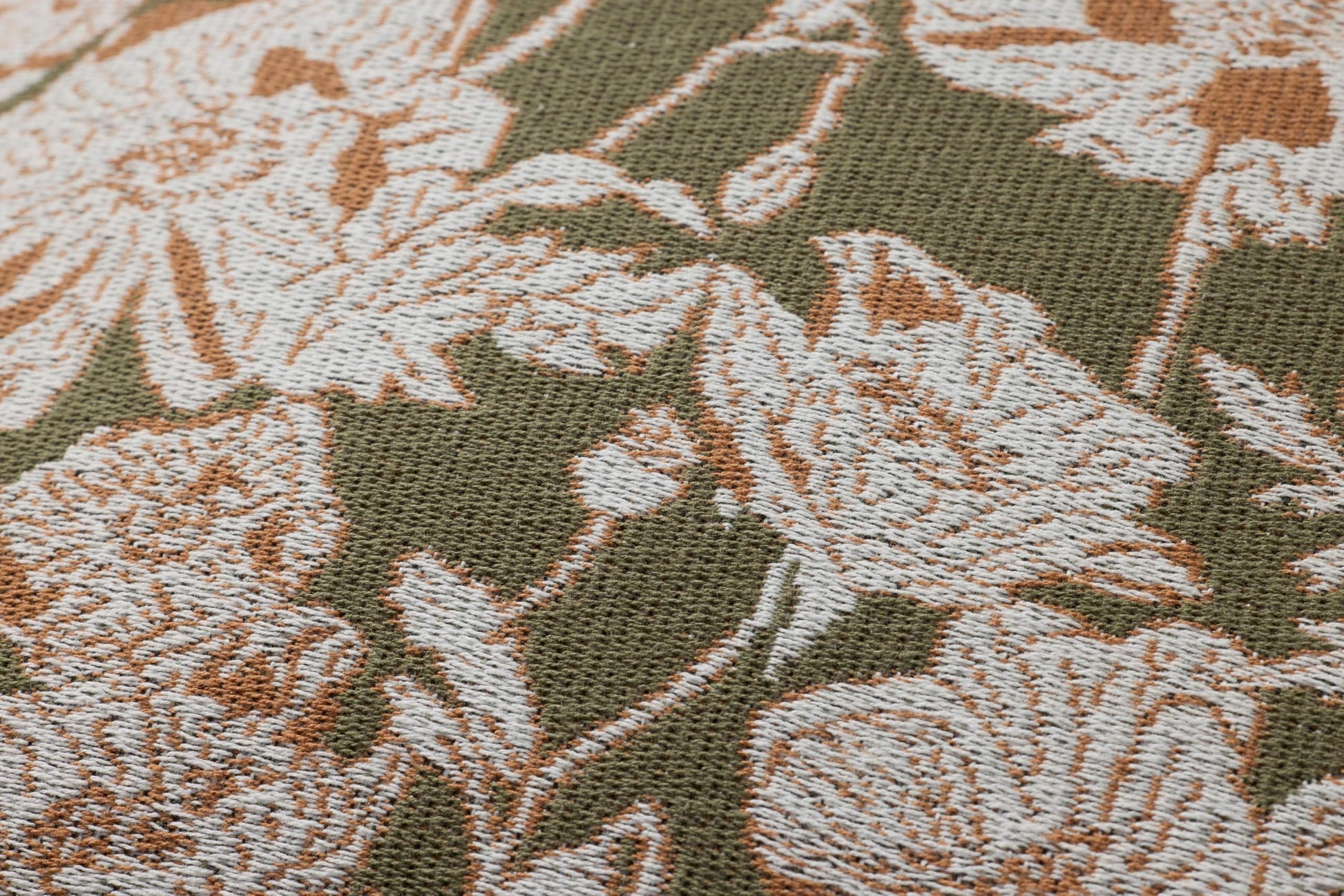Details: Matilda is a jacquard woven throw pillow from Chris Loves Julia x Loloi with ivory and brown hand-drawn florals against an olive green background for a sophisticated multi-tonal look. The pillow cover is made of cotton and polyester and measures 18” x 18”, the perfect size to style in living rooms and bedrooms.