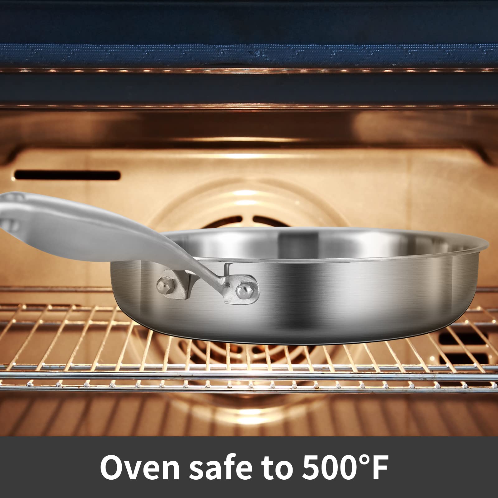 - Dishwaher and Oven Safe:The high quality tri-ply clad make the pan dishwasher-safe and oven-safe up to 500°F.