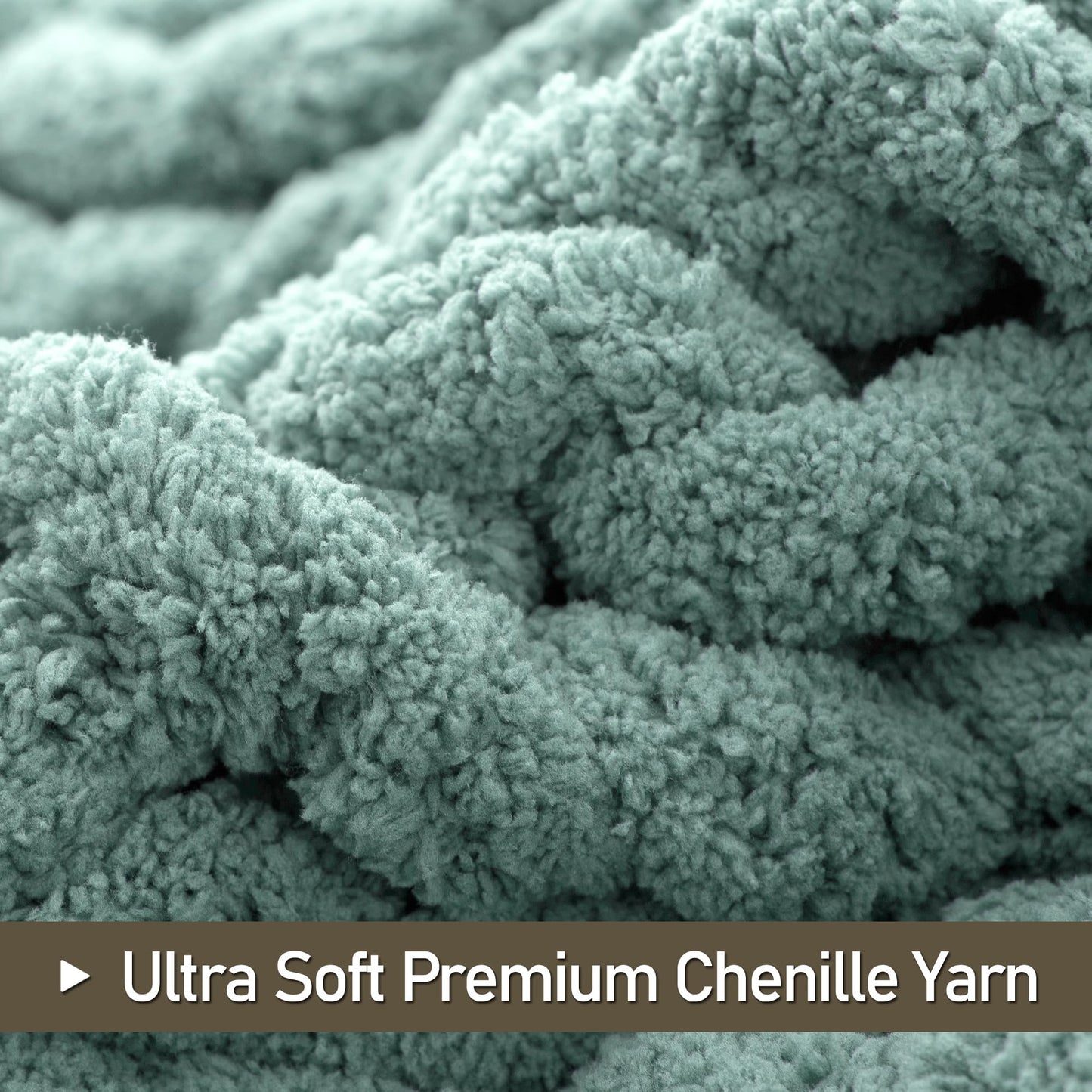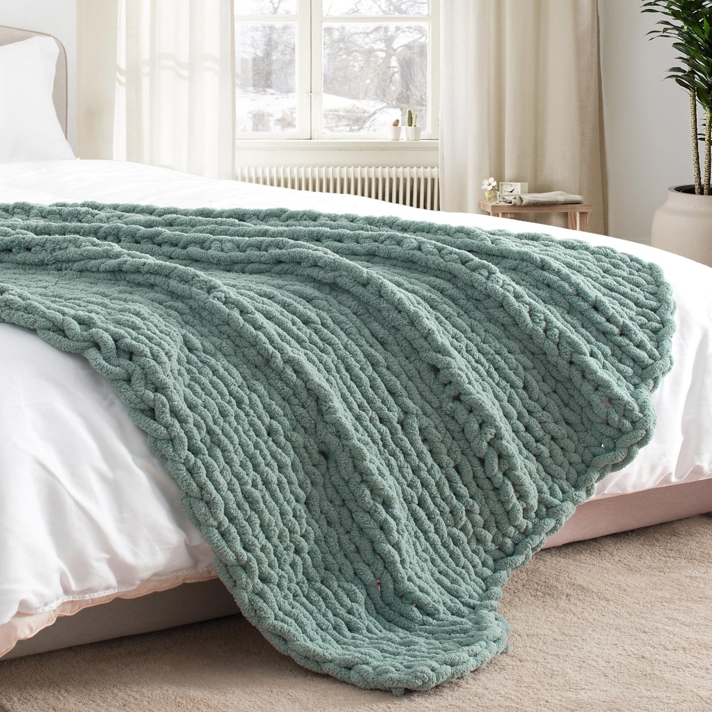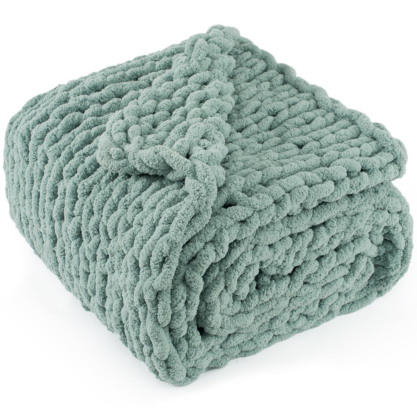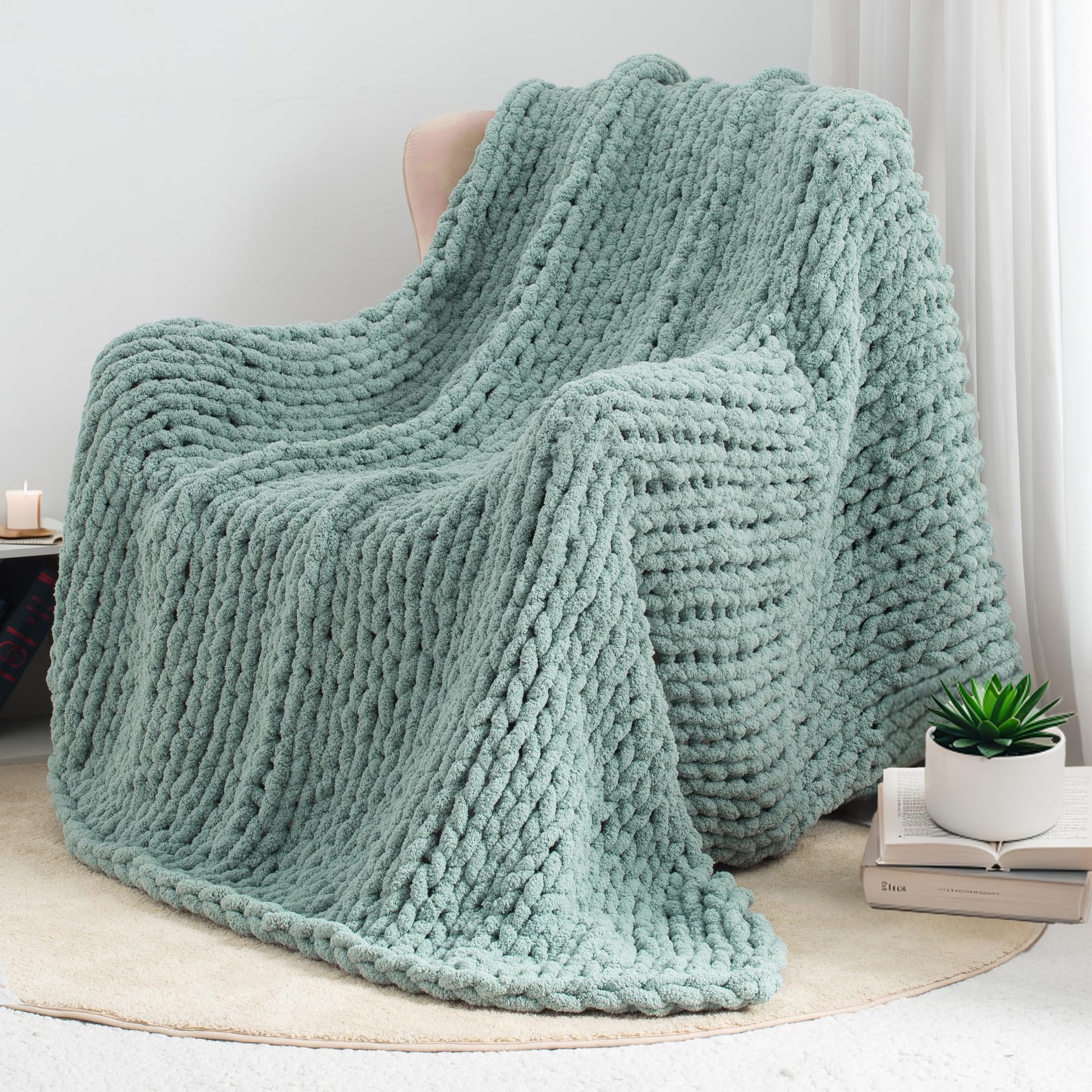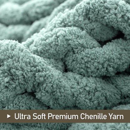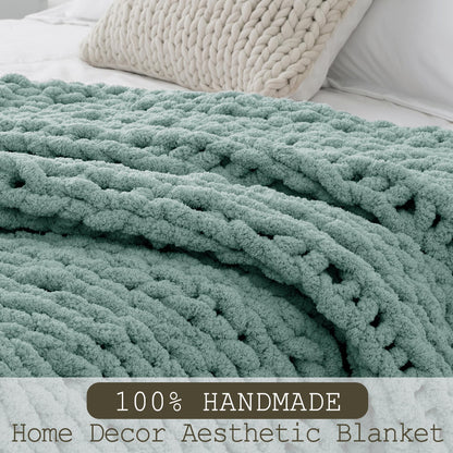 LONG CREATE Chunky Knit Throw Blanket 60"X 80", 100% Handmade with Soft Chenille Yarn, 6.7lbs Thick Cable Knitted Blankets, Large Rope Knot Crochet Throws for Couch Sofa Bed Home Decor, Sage Green