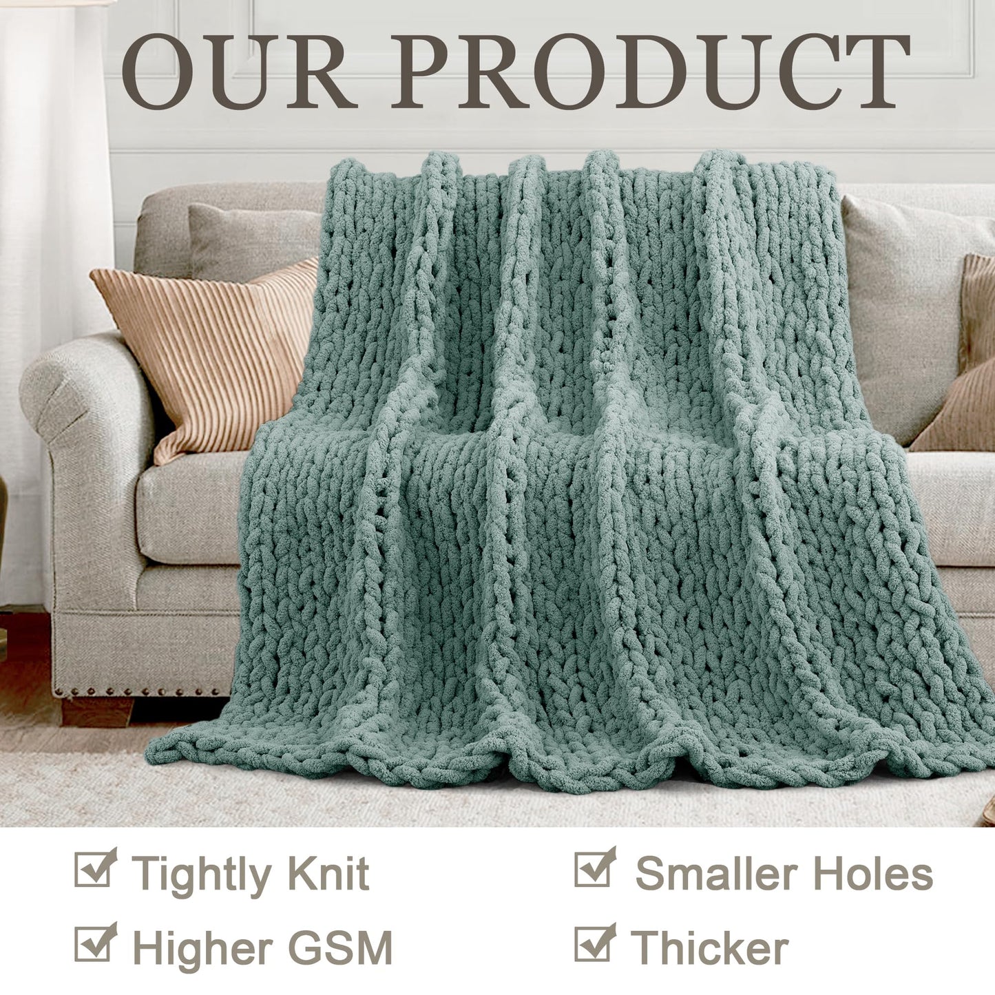 • Cozy and Stylish Home Accessory: Elevate your home decor with this Chunky Knit Throw Blanket. Its luxurious and chunky knit design adds a cozy and stylish touch to any living space, creating a warm and inviting atmosphere.