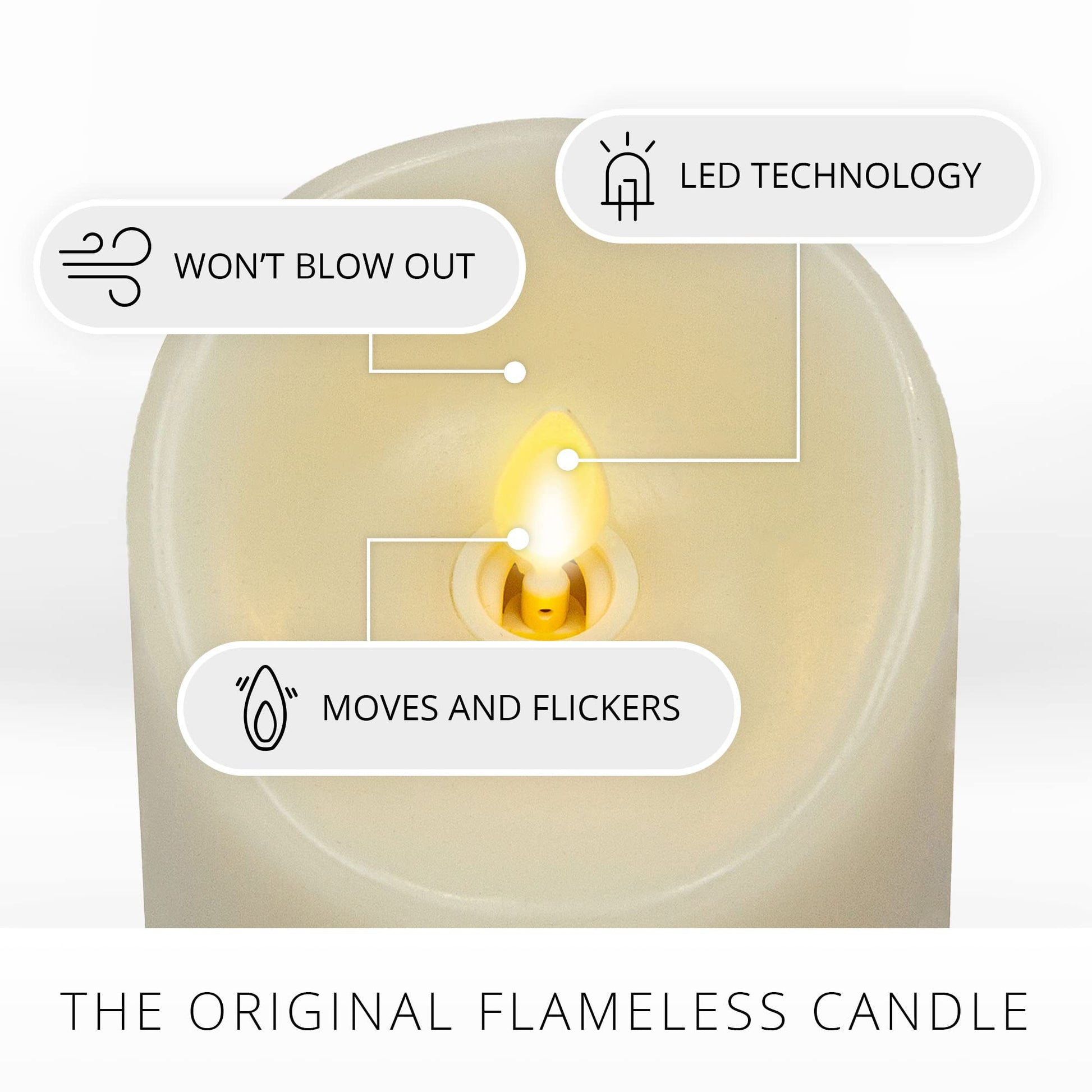 - Enjoy the cozy glow of candles without any of the fuss! At this 3.5" in diameter and 9" high, this real flame-effect candle isn't so small it disappears into the background, but not so big it dominates the room. It is turned on and off by a switch on the bottom, which also activates the timer. This style of flameless candle is capable of being operated by a remote.