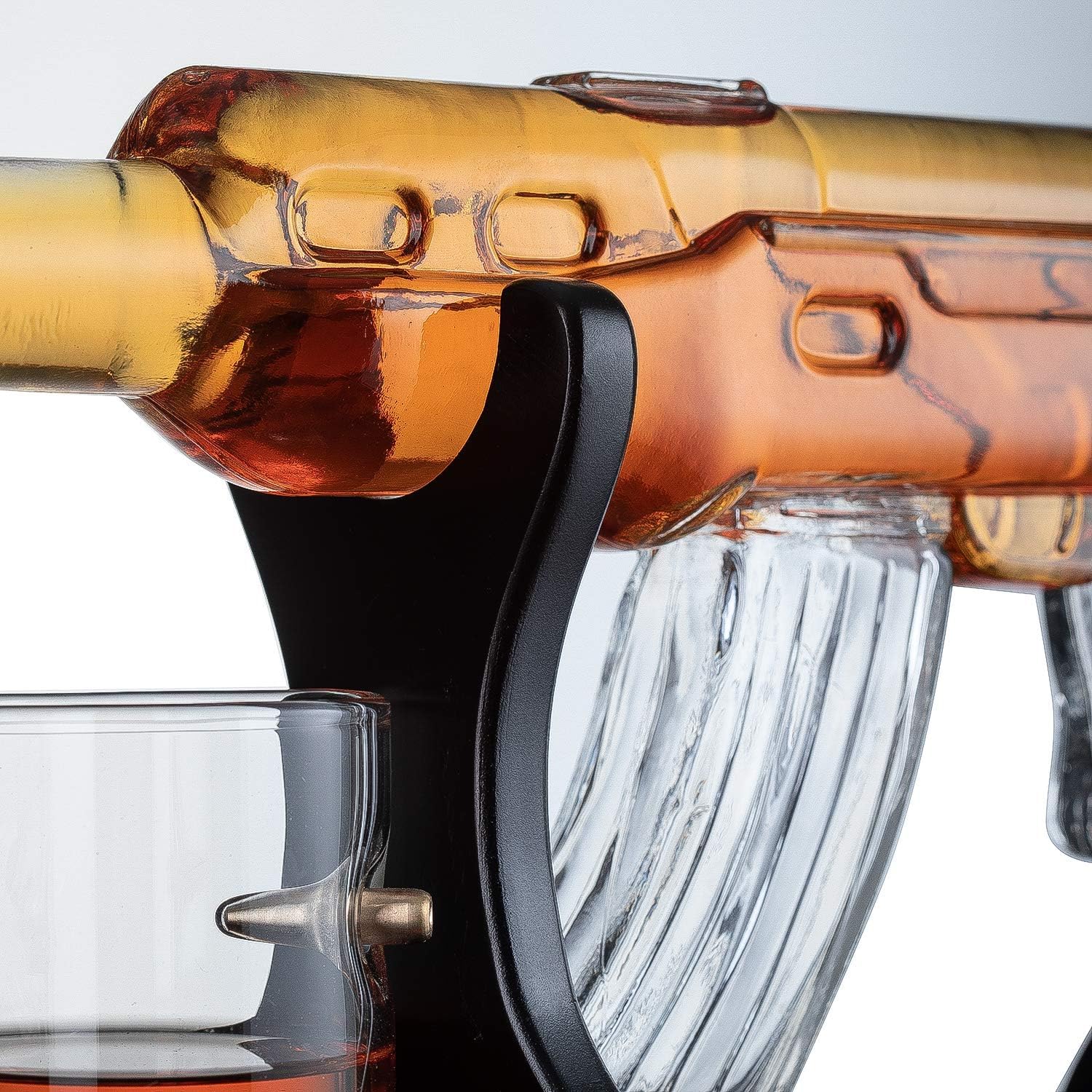 Luxury AK47 Gun Decanter with Bullet Glasses - Whiskey Decanter Gift Sets - Unique Liquor Glass Gun Alcohol Bottle - Gift Wine Bourbon Tequila Liquor Decanter Set Men Gifts Dad Father, Anniversary Bar