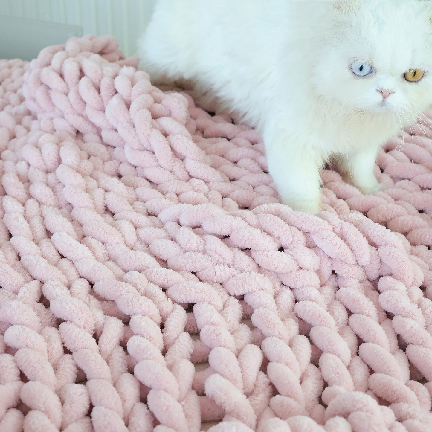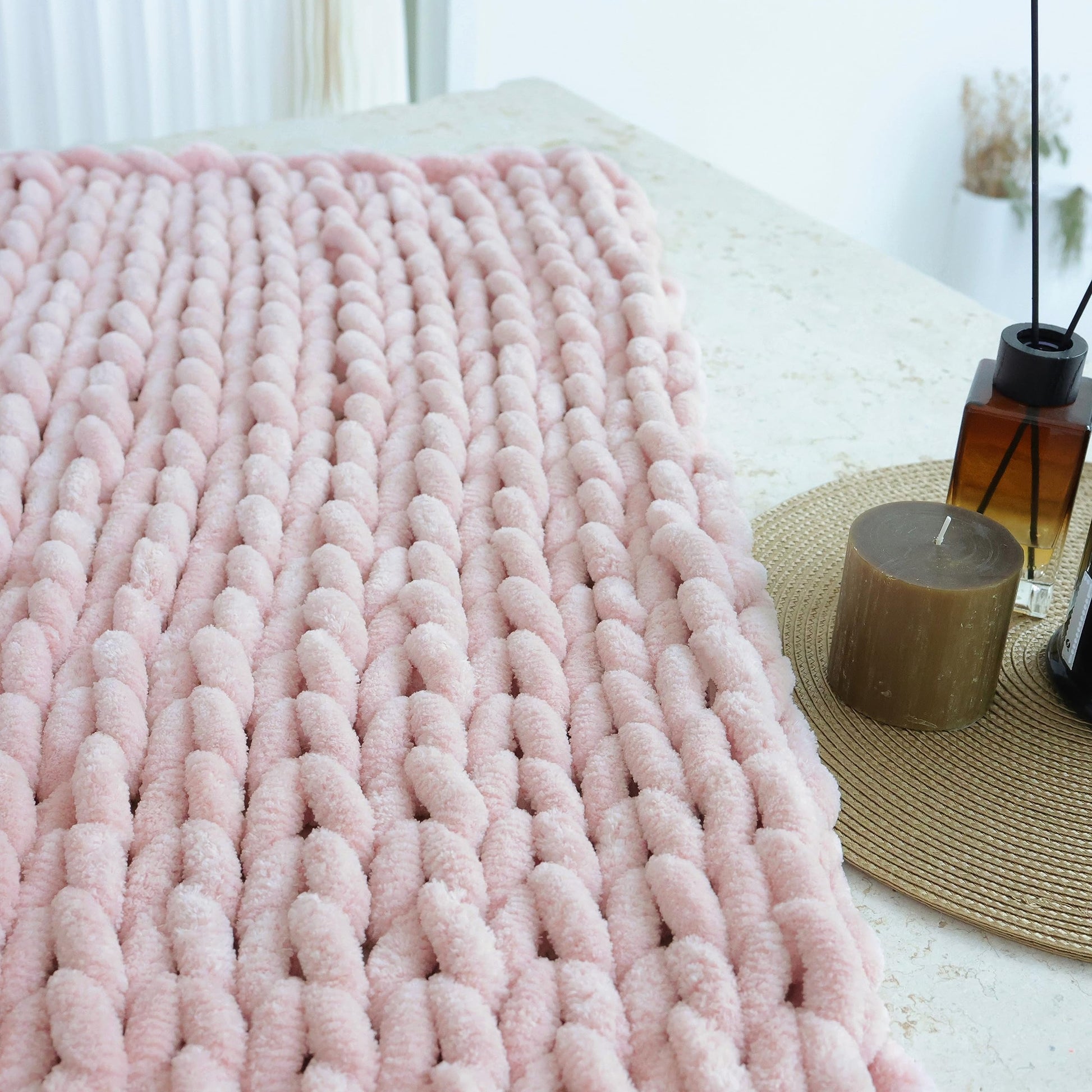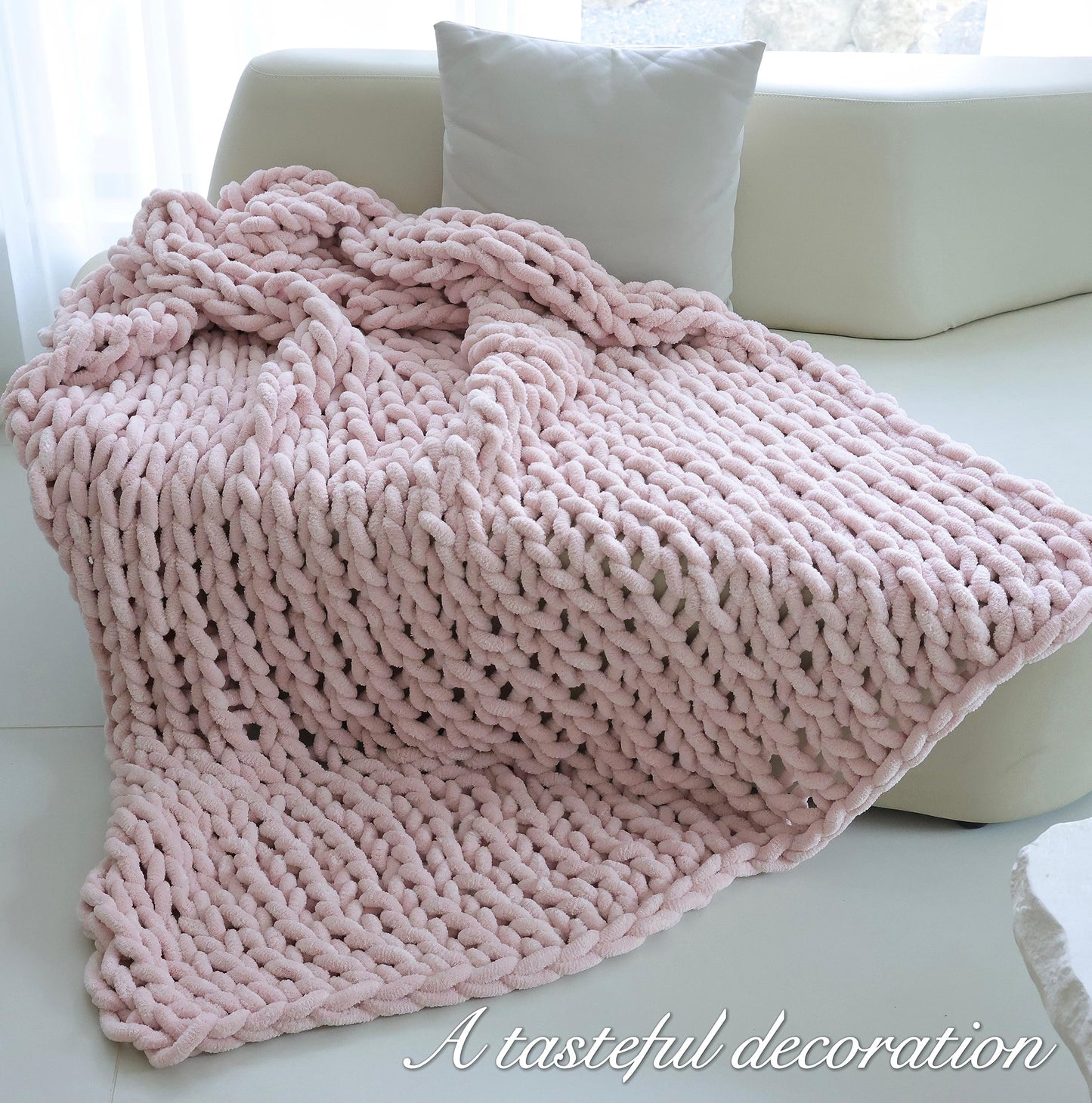 Maetoow Chenille Chunky Knit Blanket Throw (60×80 Inch), Handmade Warm & Cozy Blanket Couch, Bed, Home Decor, Soft Breathable Fleece Banket, Christmas Thick and Giant Yarn Throws, Light Pink