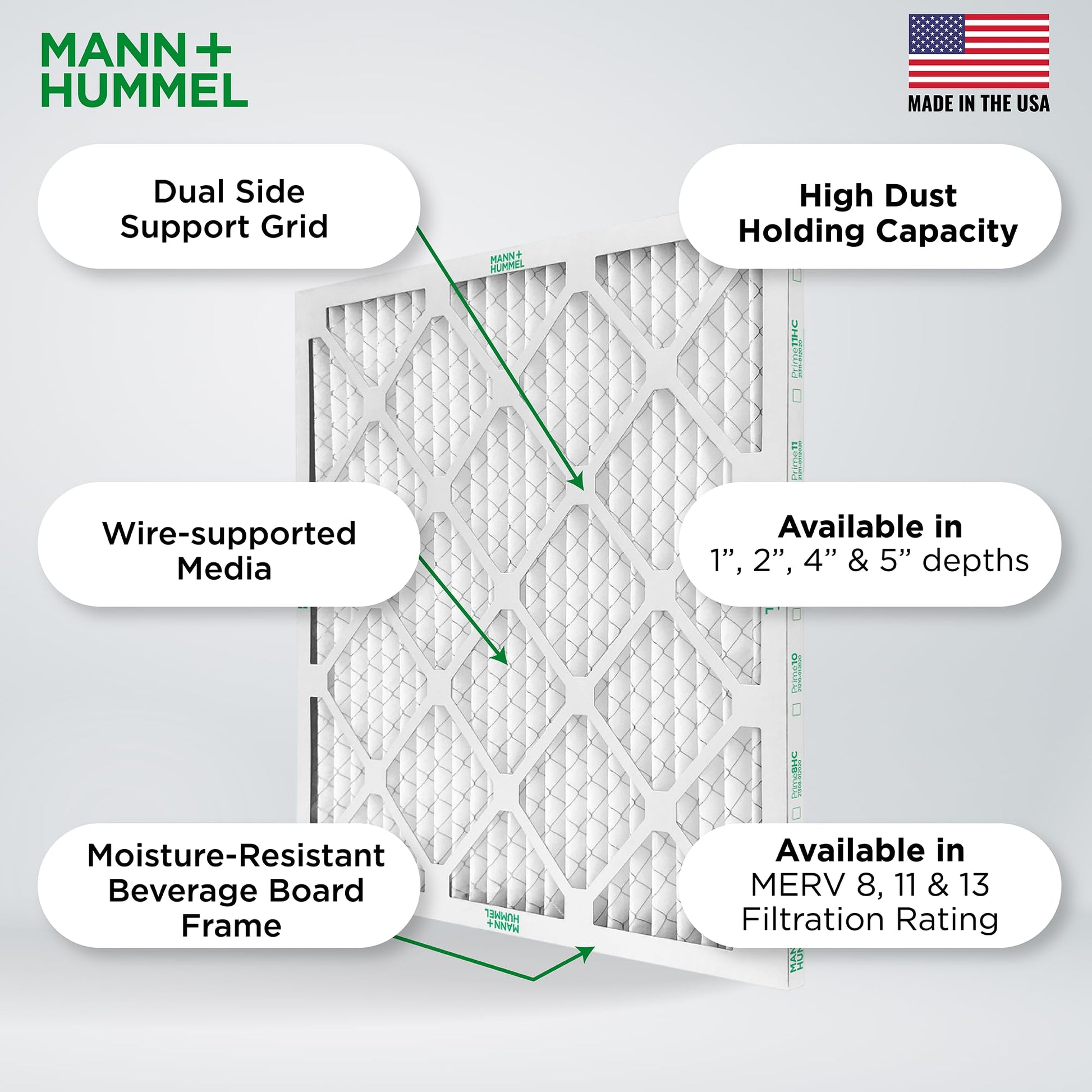 Mann+Hummel 16x20x1 MERV 8 Pleated HVAC AC Furnace Air Filters. Case of 12. (Exact Size: 15.5 x 19.5 x 0.75 Inches)