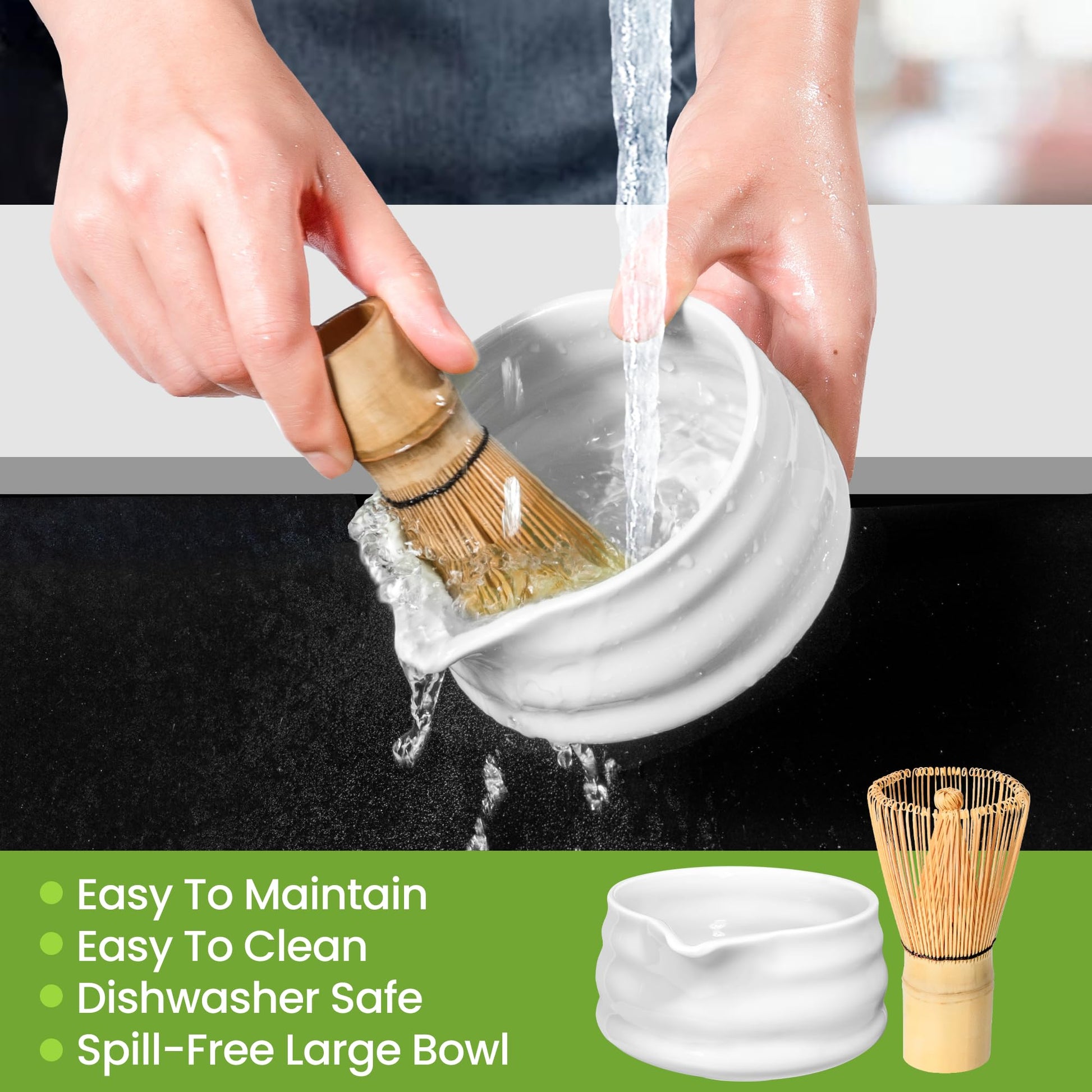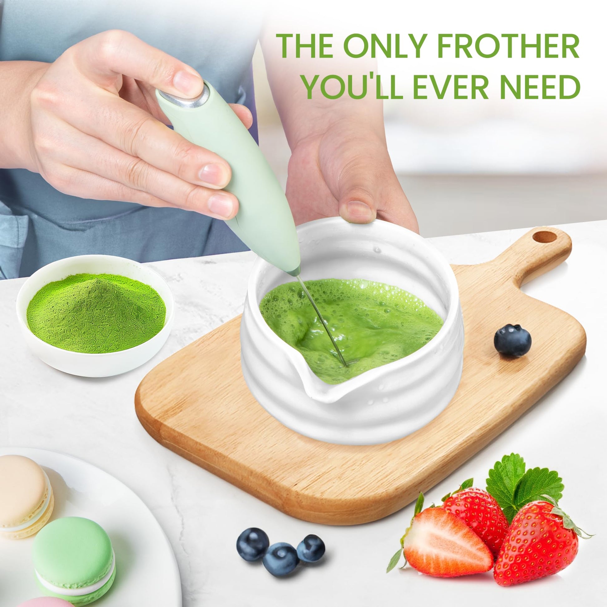 - 【MATCHA TEA ENTHUSIAST'S DELIGHT】Our mini whisk drink mixer can play an integral role in any matcha set. It's the perfect companion for all your beverage adventures. The lead-free ceramic matcha bowl is designed with a pouring spout that prevents tea spilling and lets you better share matcha with your family and friends.