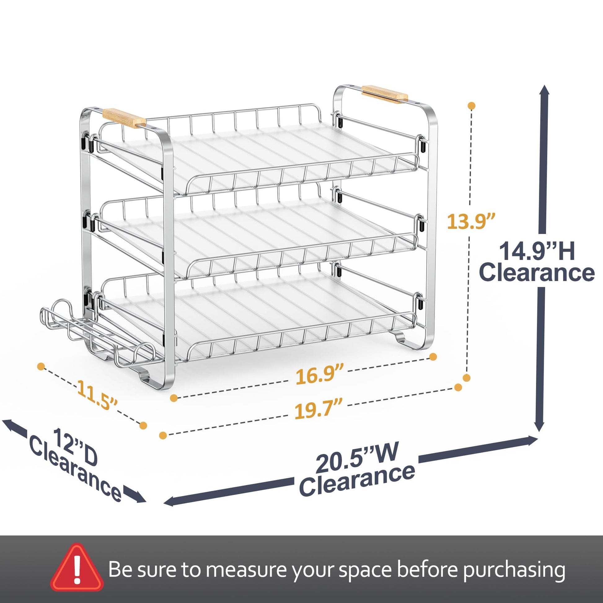 - Efficient Storage Capacity: 3-tier can organizer measures 19.7" x 11.5" x 13.9" and holds up to 40 cans, boosting storage in pantry or kitchen. Purchase multiple racks for stackable design that makes the most of vertical space to keep pantry organized
