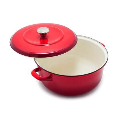 Merten & Storck German Enameled Iron, Round 5.3QT Dutch Oven Pot with Lid, Foundry Red