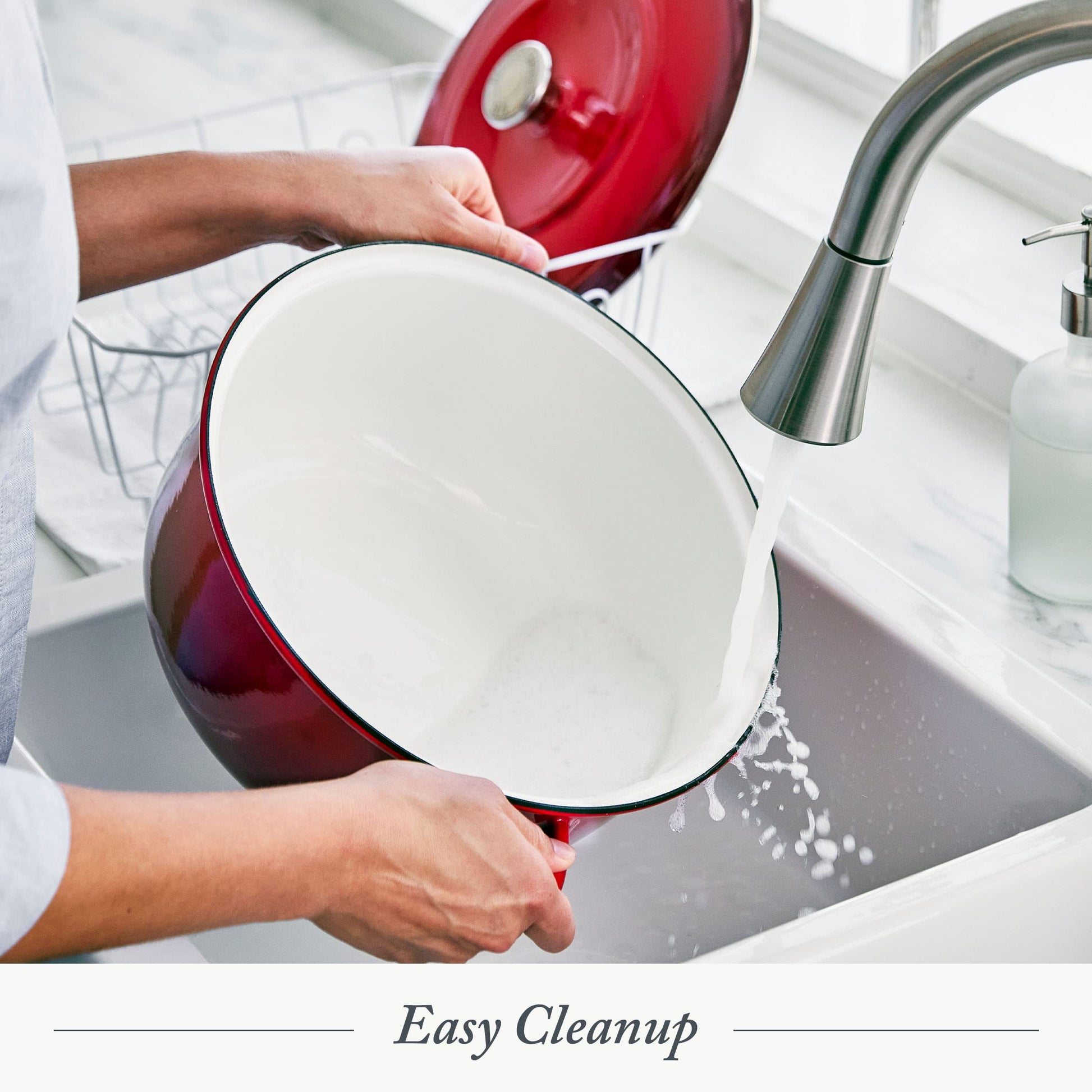 Details: With the 1873 Dutch Oven, you’re in total control. Crafted from our unique German enameled iron, this Dutch oven is 30% lighter, thinner, and less brittle than cast iron. Our German enameled iron heats faster and more evenly than cast iron, which lets you dial in the perfect temperature for any meal. The 1873 Dutch oven is finished with a smooth GlazeGuard surface, which is fused directly to the body and creates a bond that’s more chip-resistant than enameled cast iron. Oven safe up to 600°F. Hand wash only.