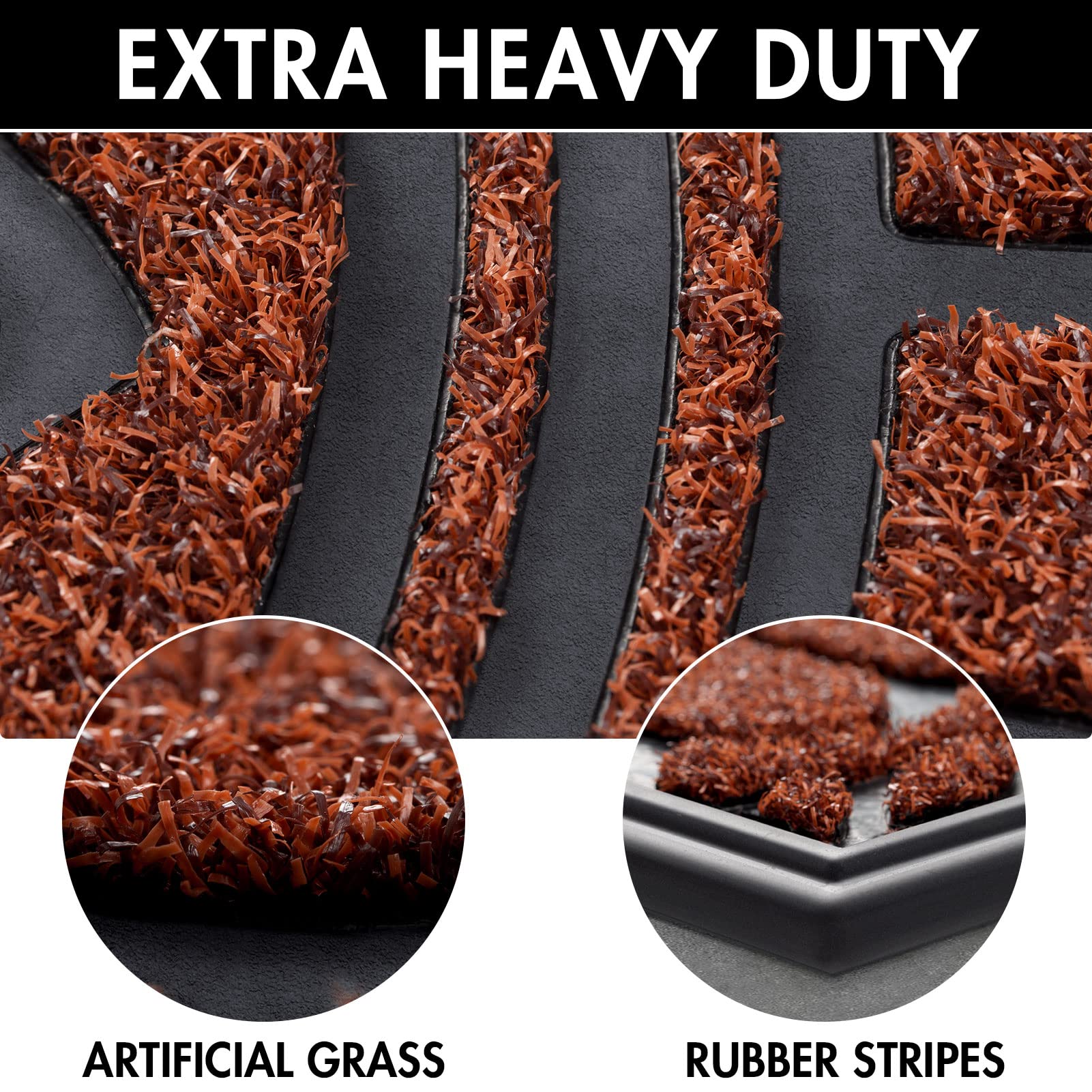 - 【IDEAL MAT USE】: Indoor, outdoor, kitchen, apartment decor, front door, entryway, hall, patio, garage, bathroom, store welcome mat, or any location that sees a good amount of foot traffic. Keeping your floors clean as the slightly raised grass polypropylene fabric helps scrape dirt, mud and debris from shoes.