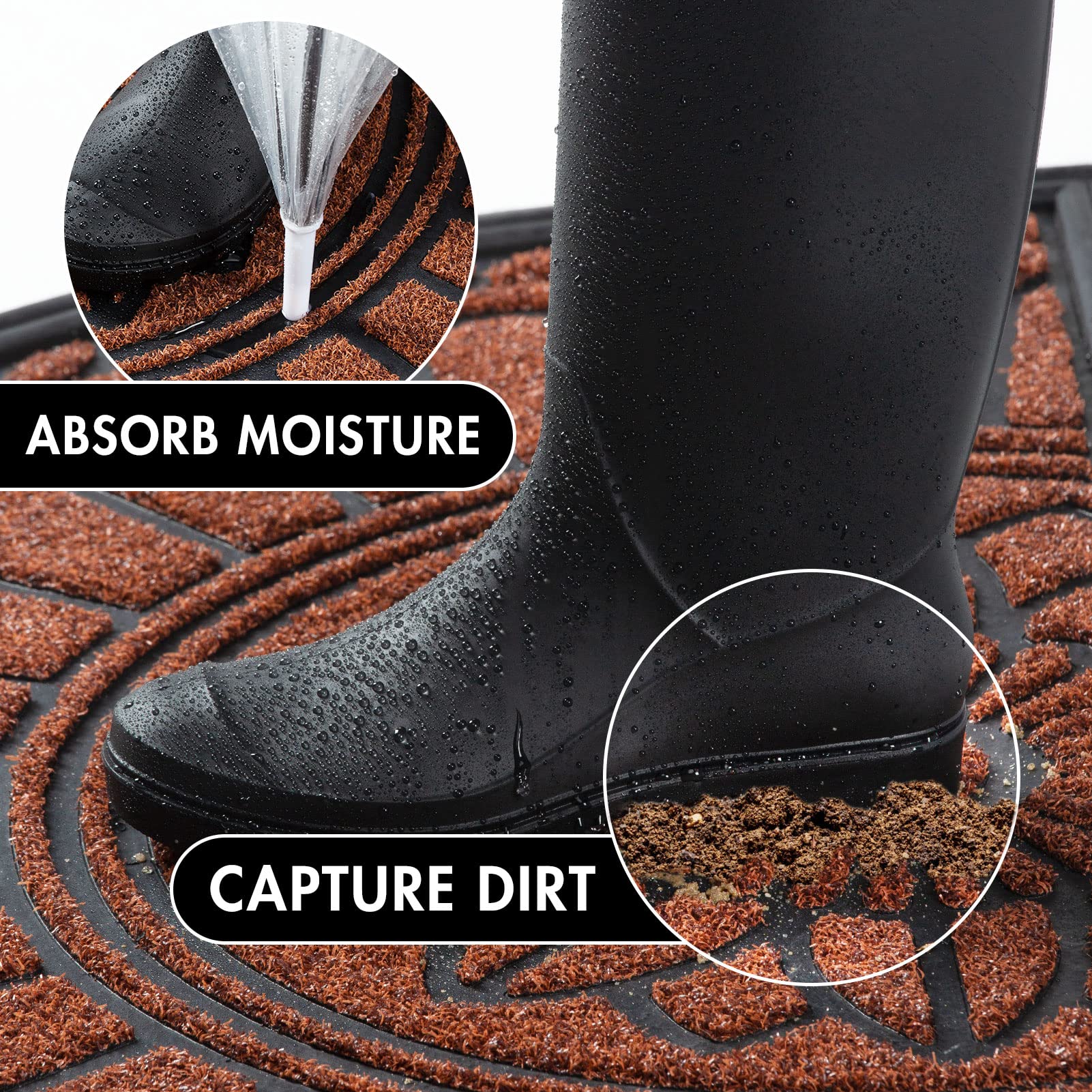 - 【LOW-PROFILE&NON SLIP】: MIBAO half-circle mat measures 24 36", features 1/2" thick, low-profile design ideal for low-clearing doors or entryways, won't stuck the door. The raised pattern anti slip backing made the door mats can grip on indoor outdoor floor type. Pets and kids running and sprinting safely in daily playing, and won't slip or scuff floors.