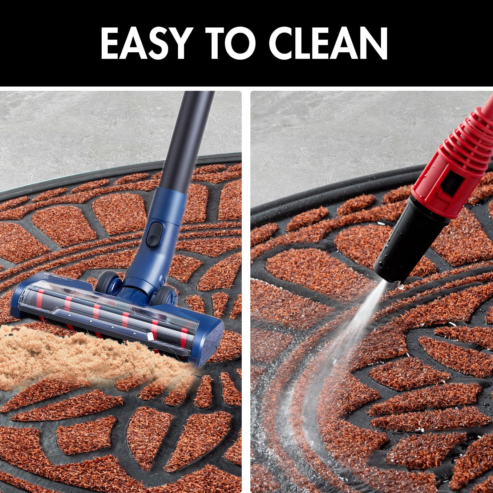 - 【EASY TO CLEAN】: Simply vacuum with a hand-held vacuum, sweep with a broom, or shake off outdoors or over your garbage bin. For a deeper clean, wipe with a damp cloth and mild soap, or use a garden hose to rinse the mat outdoors. Allow your mat to fully air dry before next use. Do not use bleach.