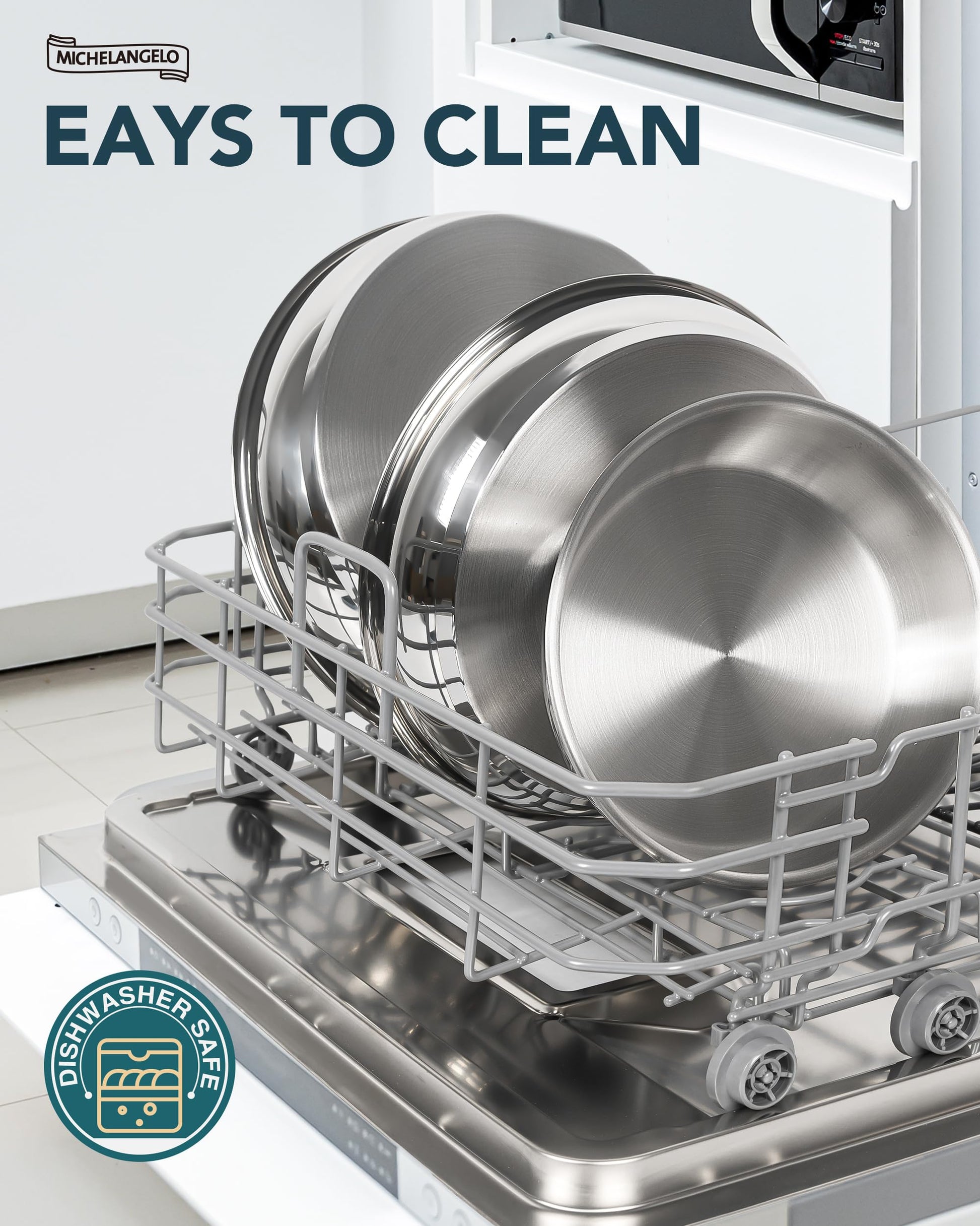 - Durable Construction: Crafted from high-quality 18/10 stainless steel, our cooking pan set is built to last. Resistant to rust and corrosion, these pans ensure long-term performance for all your cooking needs.