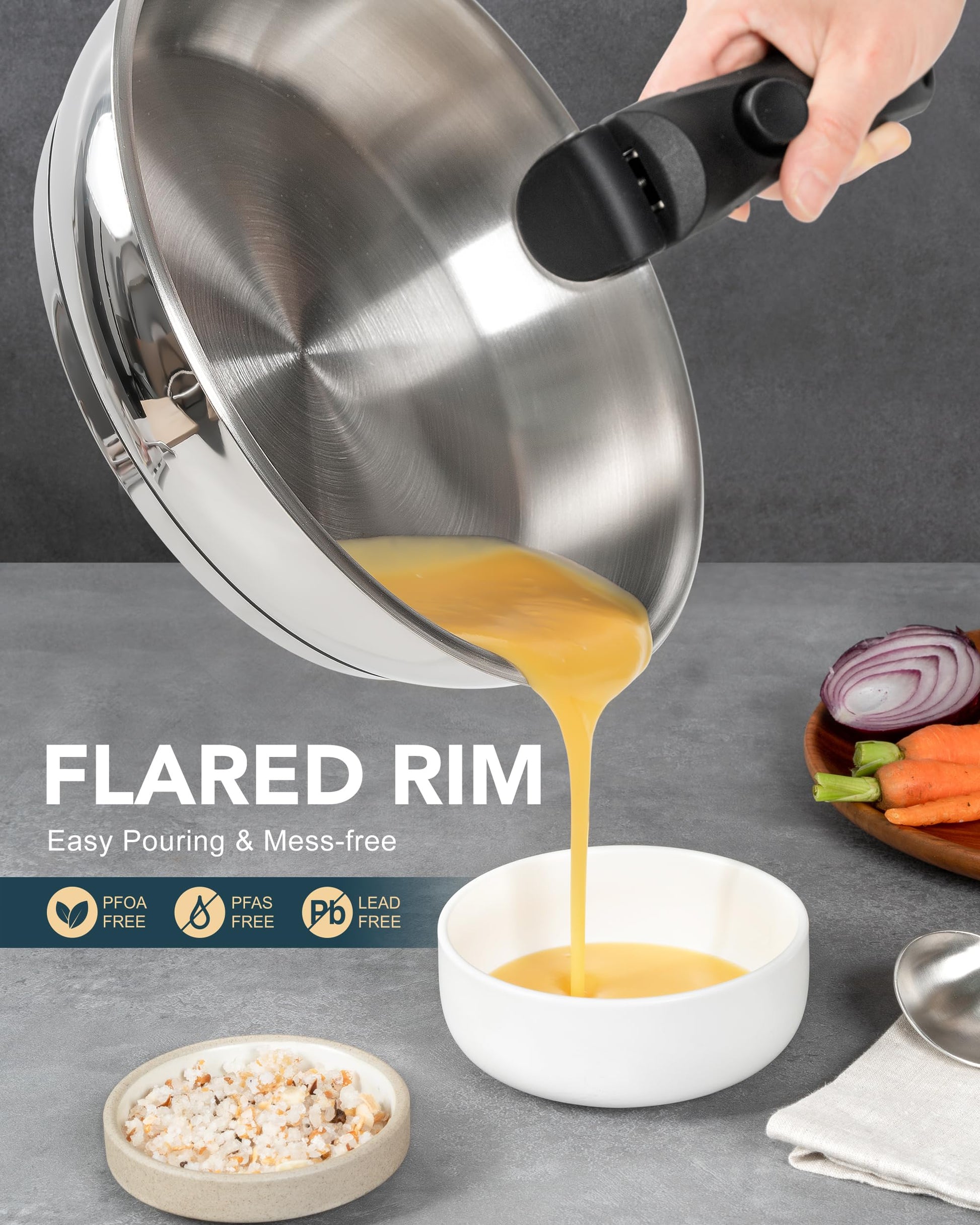 MICHELANGELO Stainless Steel Frying Pan Set, Cooking Pans with Removable Handle, Triply Base Stainless Steel Pan Set, Induction Compatible Skillet- 8" & 9.5" & 11"