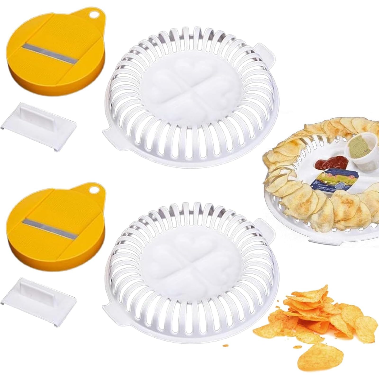 Microwave Potato Chip Maker with Potato Chip Slicer,Microwave Oven Potato Chips Baking Tray,Multifunctional Potato Chip Tools DIY Snack Baking Gadget,Microwave Potato Chip Maker Baking Tray (2PCS)