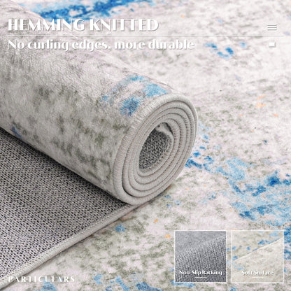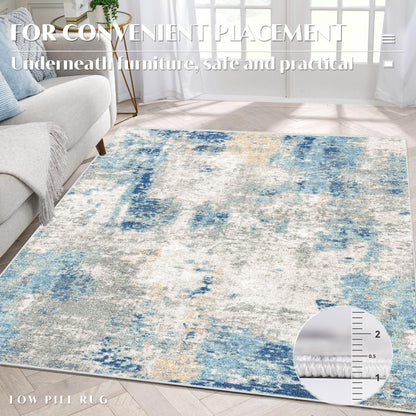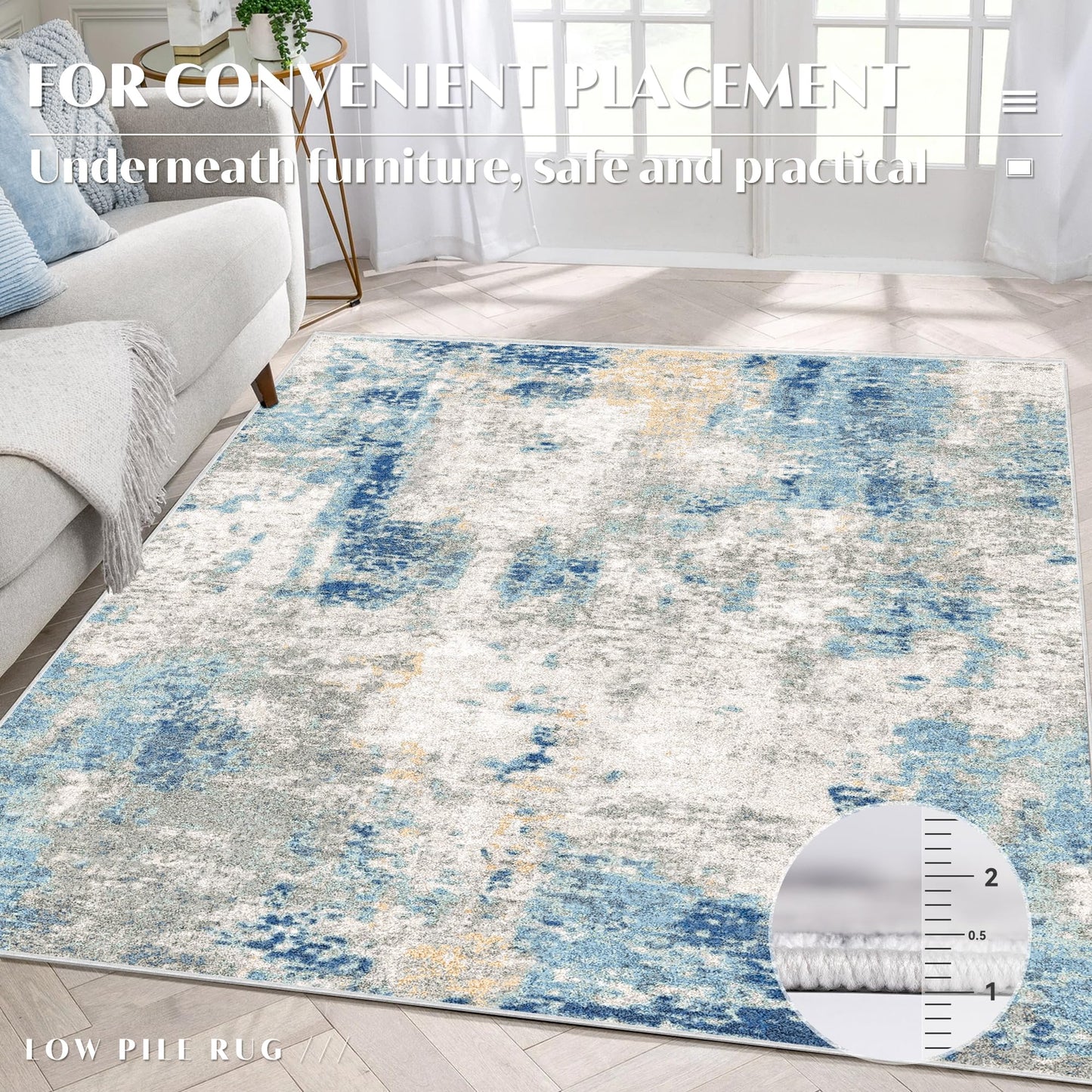 Modern Abstract Area Rug, 5x8 Washable Large Living Room Rugs for Bedroom, Soft Non Slip Contemporary Low Pile, Deerly 5x8 Rug for Kitchen Entryway Bathroom Bedroom Dining Room Office, Blue/Grey/Ivory
