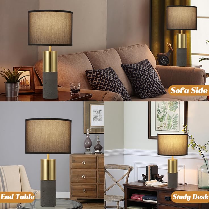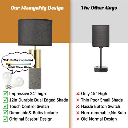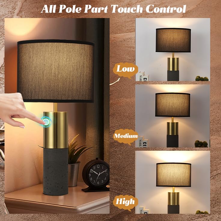 - đź–¤Natural Concrete Lamp& Brass Gold Match-- Spruce up your living space or bedroom with the black and gold lamp. Crafted of brass gold metal with a touch of concrete, elliptical black shade, this touch lamp set will add a classy touch of modern styling to your home, ideal for nightstands, console tables, side tables or desktop task lighting. Add a functional yet stylish accent to any surface in your home with Momyofdy touch lamps.