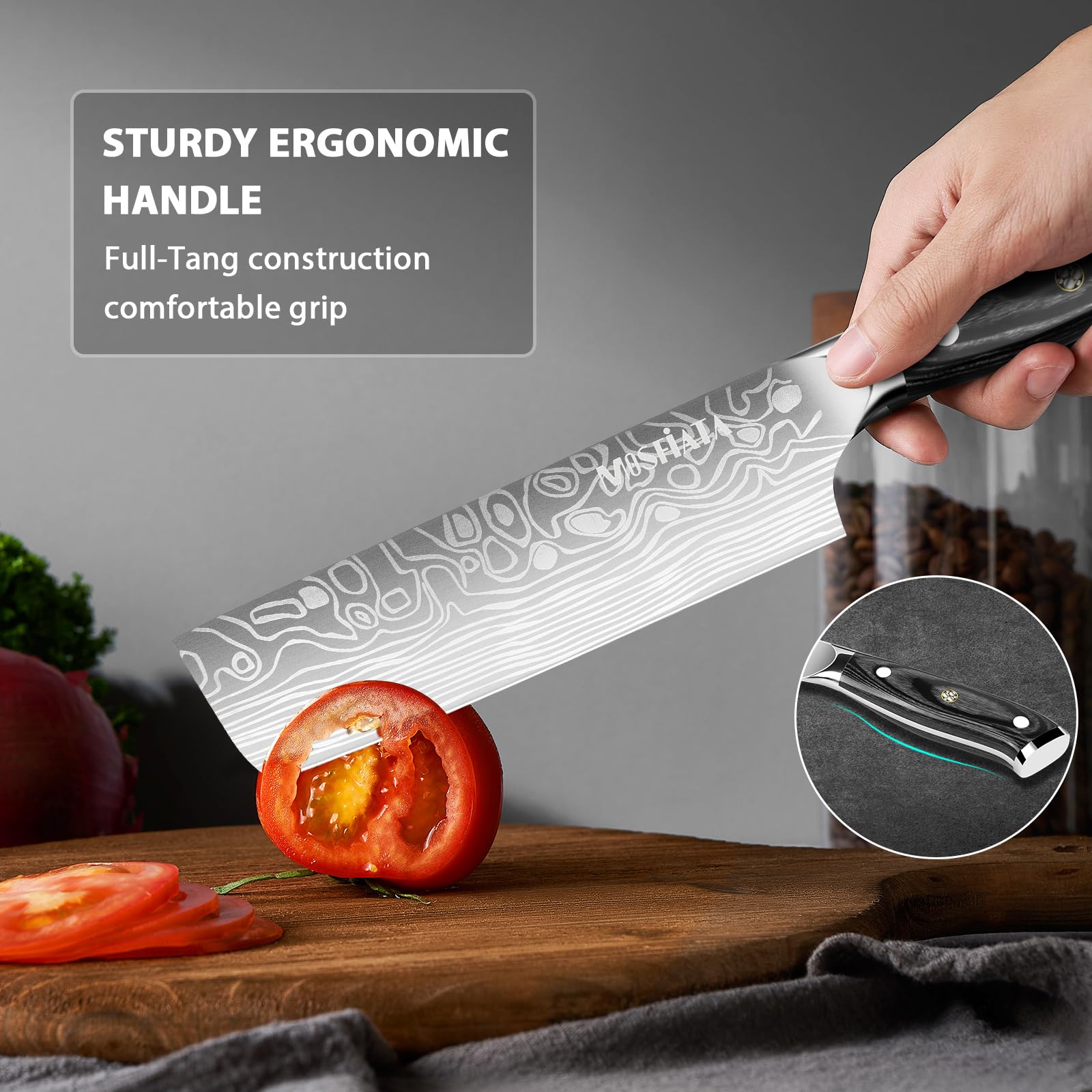 - 【Professional Nakiri Chef Cutter Set】These MOSFiATA Super Sharp Cutter can be used for your daily kitchen tasks of slicing, deboning and dicing of all kinds of meat. It is suitable for both home and restaurant kitchens.