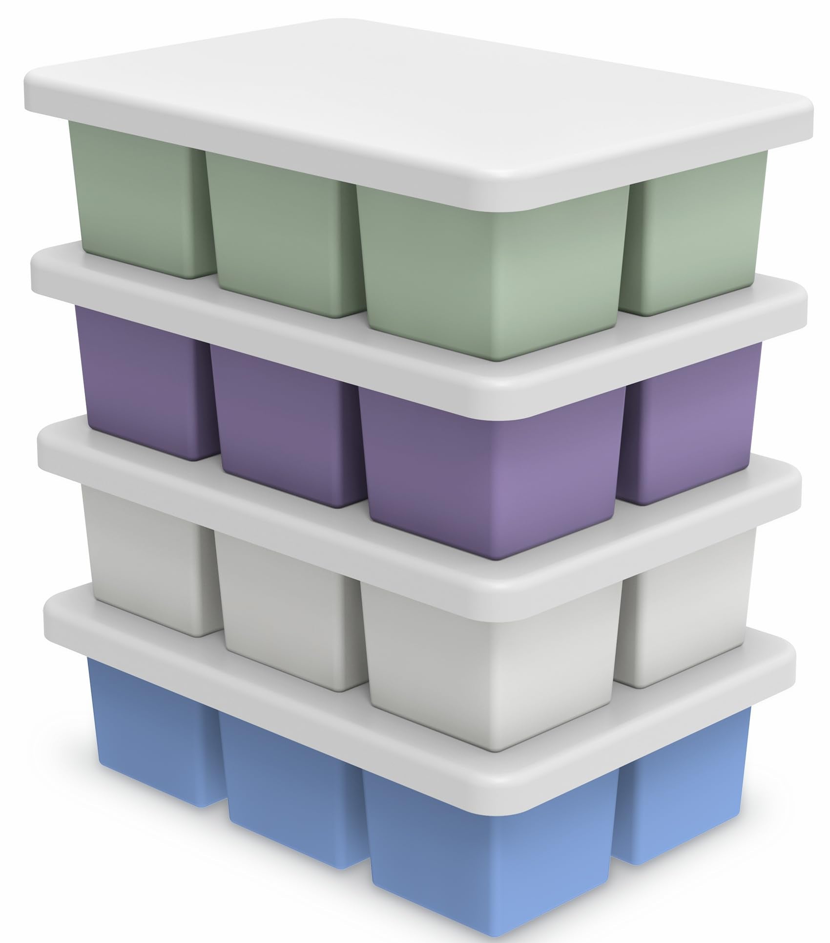 mossime Silicone Ice Cube Tray: 4pack Square Whiskey Large Ice Cube Molds - Old Fashioned Ice Cube Trays with Lid - 2inch Easy Release Big Freezer Mold for Cocktail Baby Food Soup & Juice