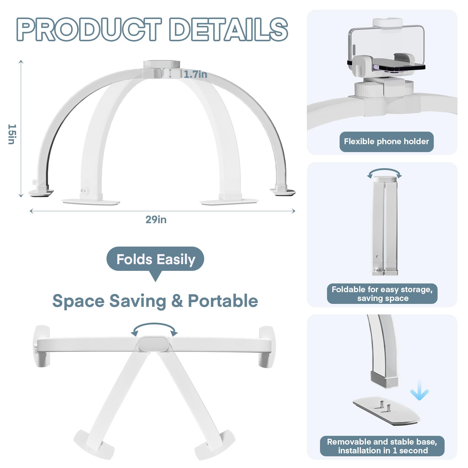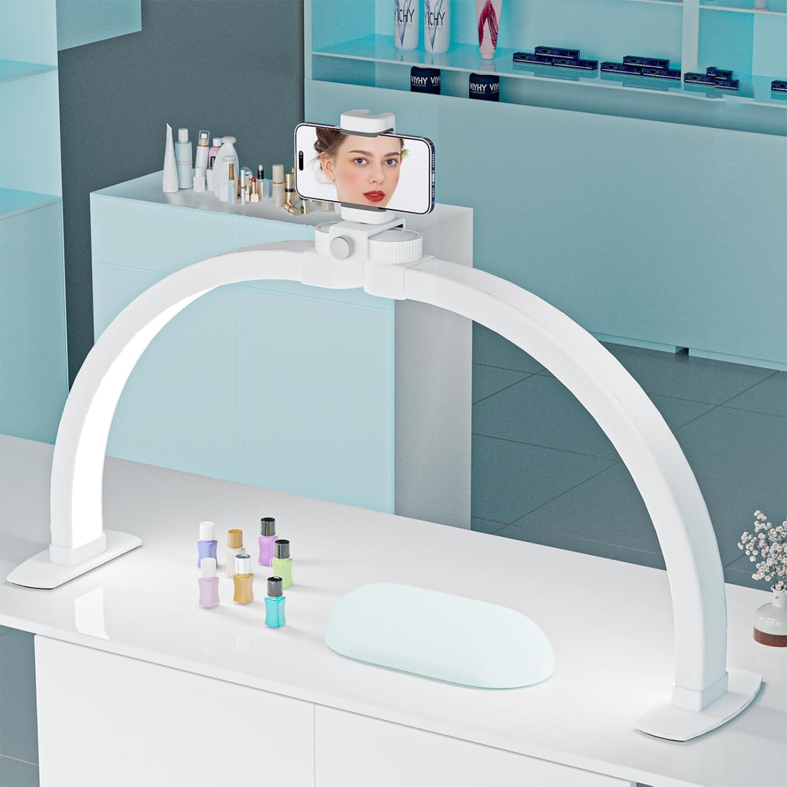 MYSWEETY Foldable Half Moon Light for Nail Desk, 29 Inch Led Nail Tech Desk Lamp, Half Moon Table Lamp with Phone Holder, 3000-6500K Esthetician Lash Light for Eyelash Extensions, Tattoo, Eyebrow