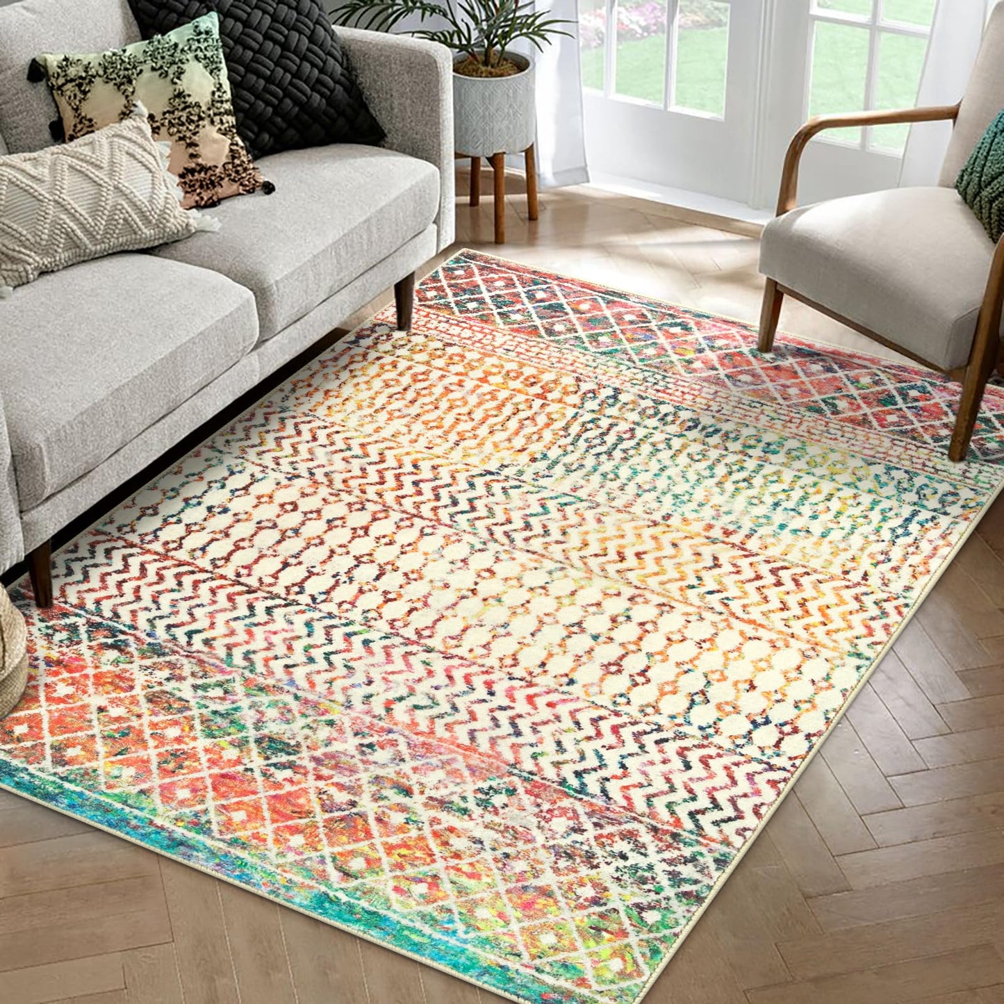 - Easy to Clean Washable Rug: The colorful rug for living room is easy to care for and washable, Keep your rug looking fresh with daily cleaning using a vacuum.For a deeper clean, simply toss in the washing machine on a gentle cycle with cold water , air dry and not need add bleach