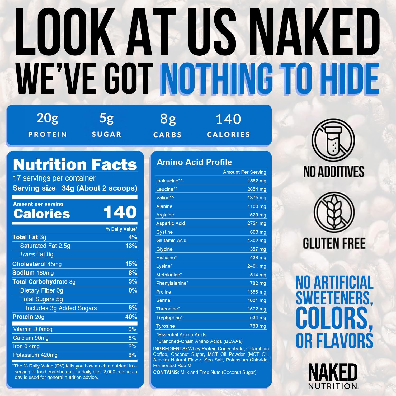 NAKED Caramel Latte Protein Coffee - Delicious Keto-Friendly Iced Protein Shake, 17 Servings