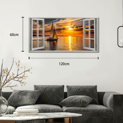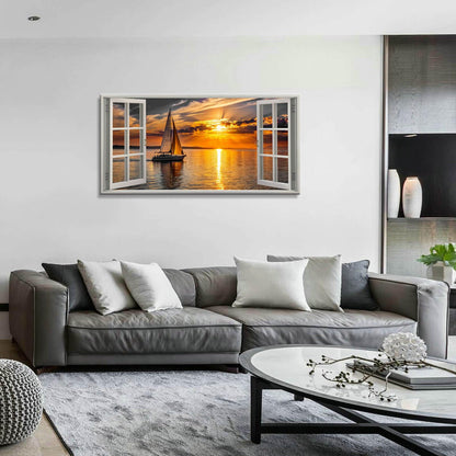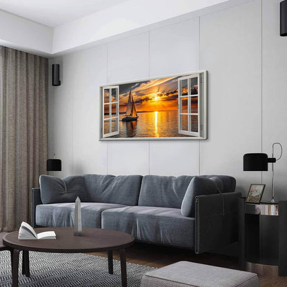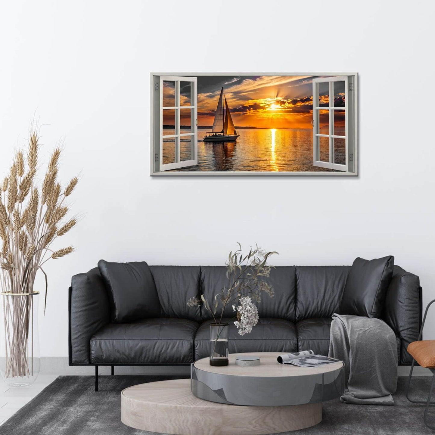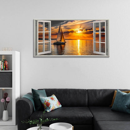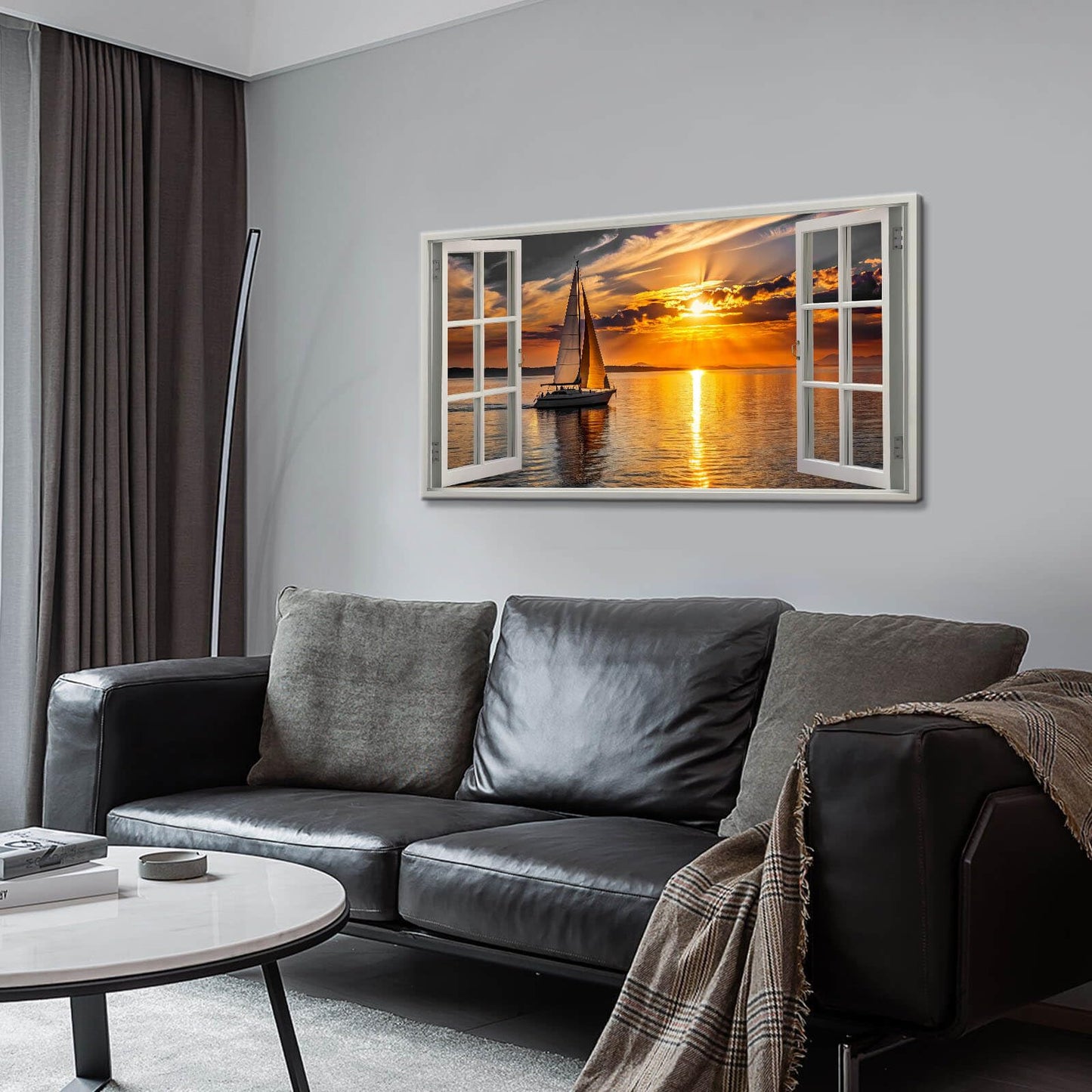Nautical Wall Art - Large Beach Pictures Sailboat Wall Art Canvas Prints Seascape Living Room Wall Decor Coastal Wall Art Ocean Sunset Themed Wall Art Landscape Bedroom Decoration Stretched 24x48inch