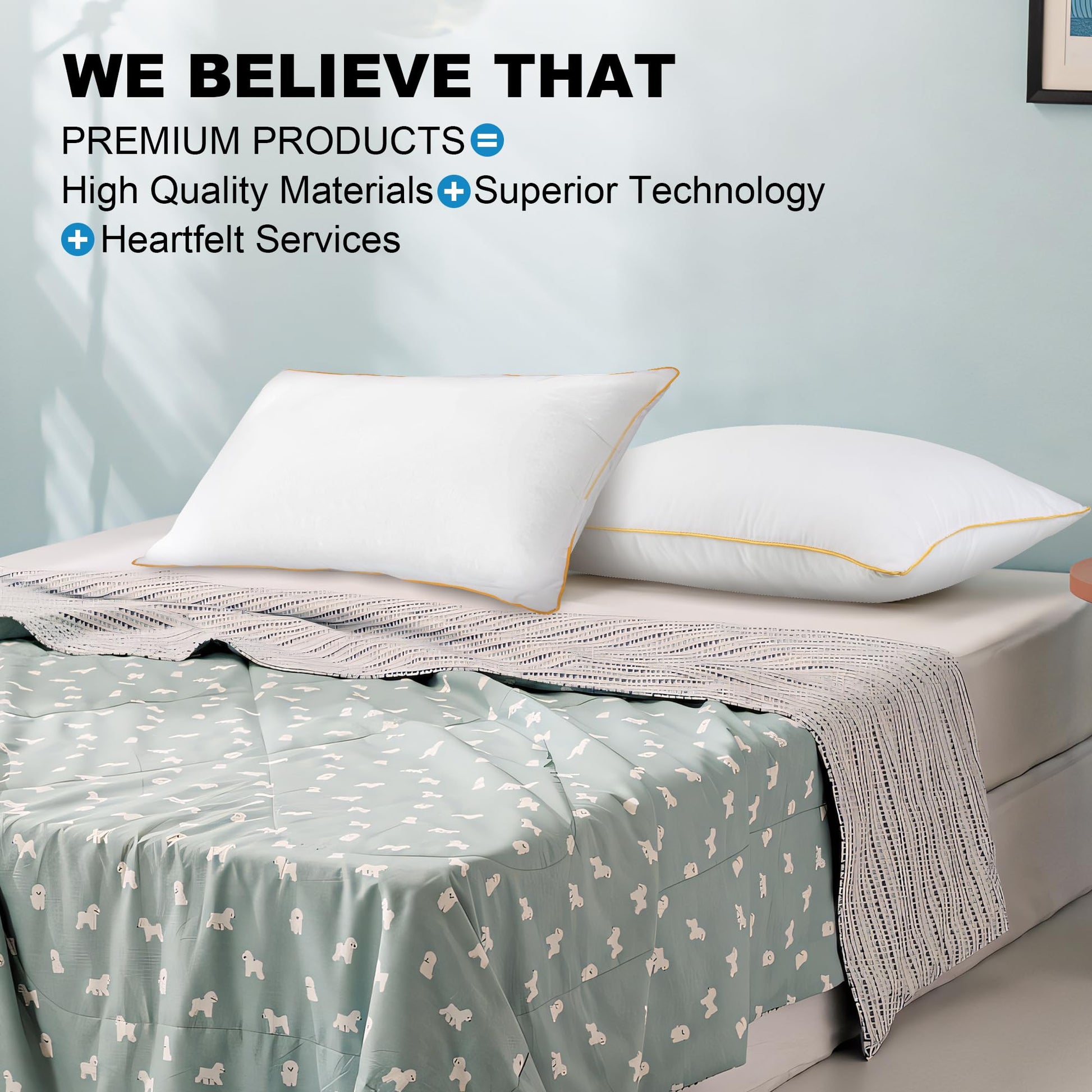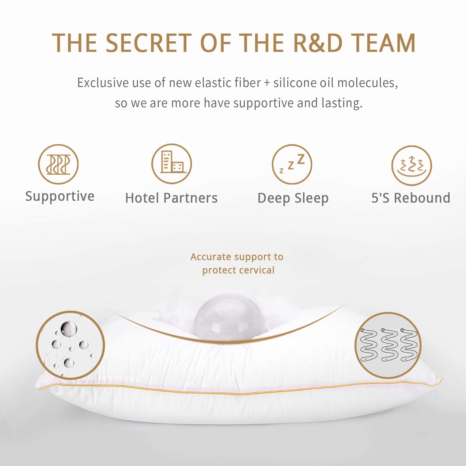 - LONGER SERVICE LIFE: The nano-molecules will form a protective layer on the fabric to keep the pillow always looking like new. The 450-thread count weave and gold double-edge sewing make the pillow more sturdy and durable. The whole piece-filling process can make the pillow evenly distributed inside without Lumps.