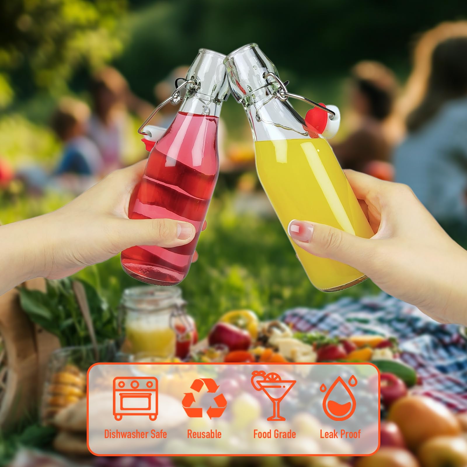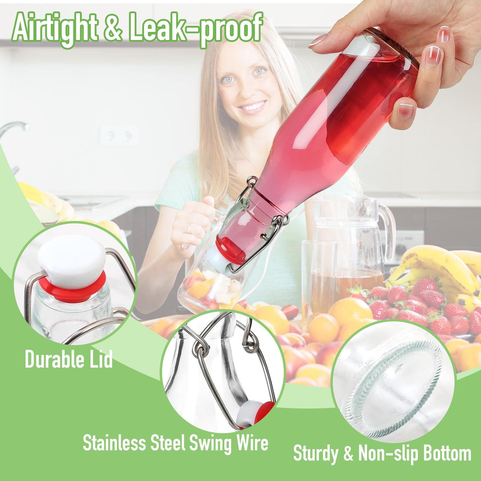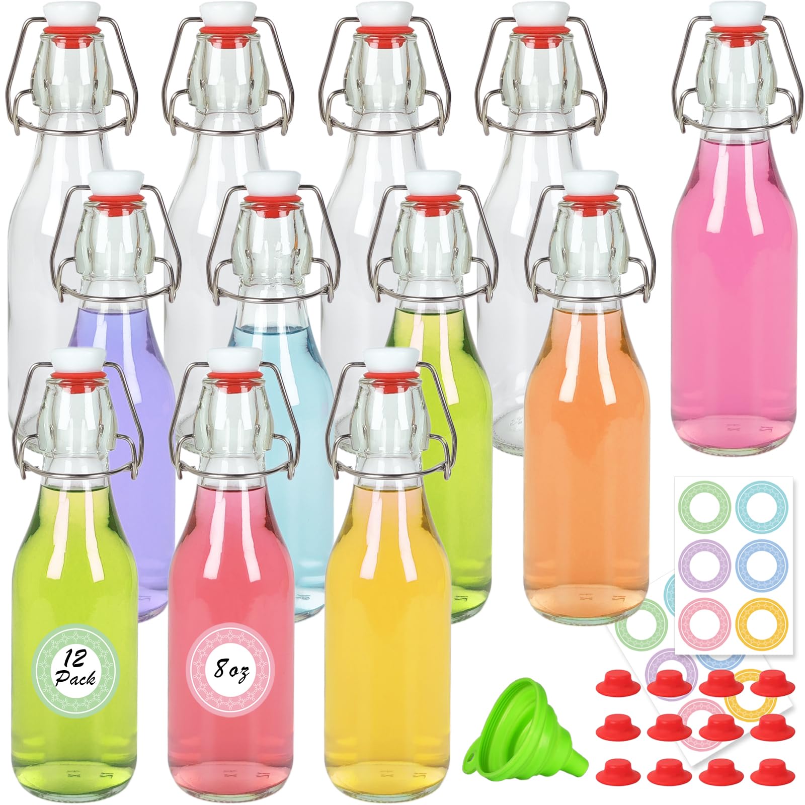 - Package Including: 12pcs 8oz empty swing top glass bottles with airtight leak-proof flip top caps, 12pcs extra replaceable rubber gaskets, 12pcs label stickers and a collapsible silicone funnel.