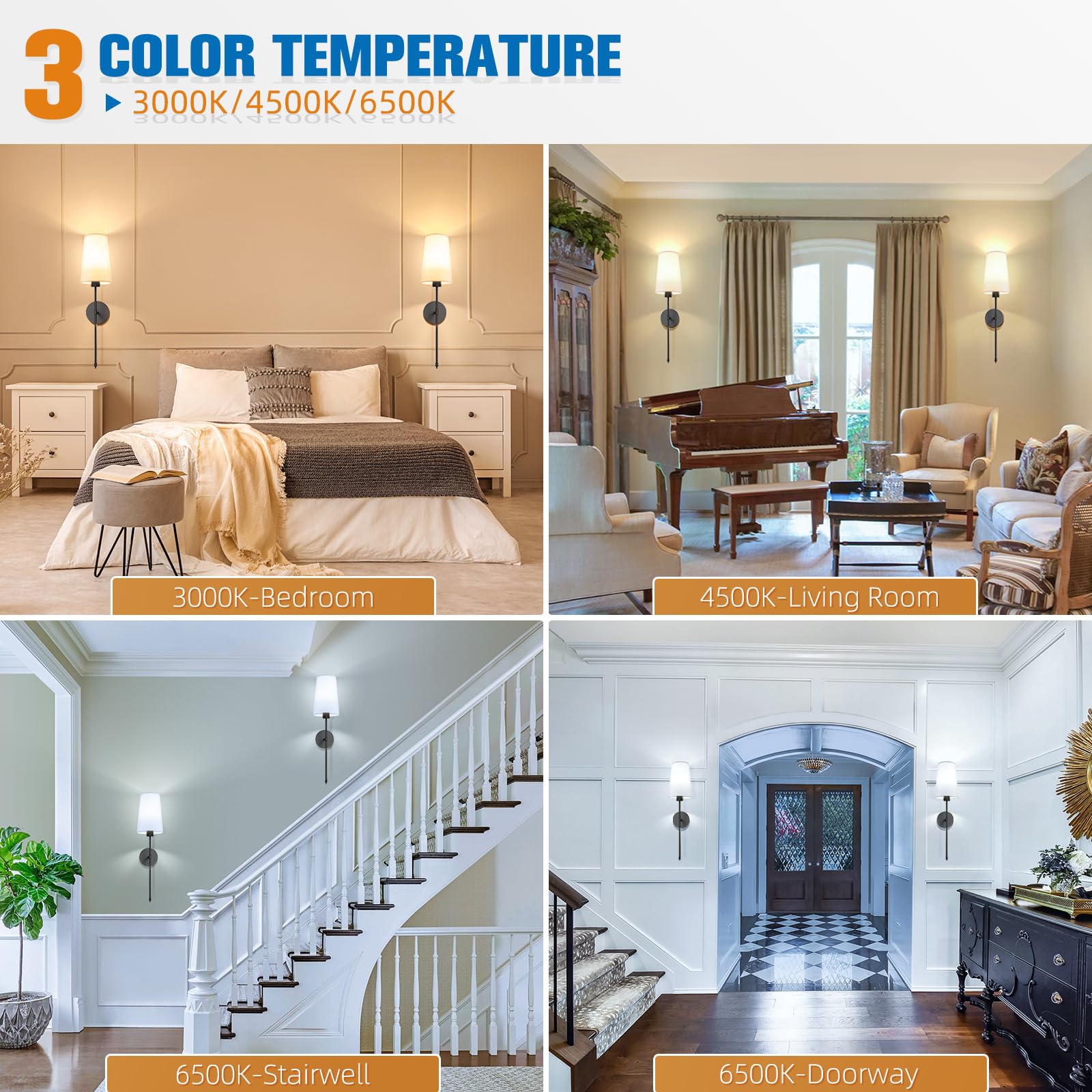 - 【Color Customized & Dimmable】Customize your lighting experience with adjustable color temperatures ranging from 3000K to 6500K and five levels of brightness (20%-100%),as well as 7 RGB colors.Whether you need warm, cozy lighting or bright, energizing illumination, our sconces wall decor set of 2 offer a comprehensive range of lighting options.