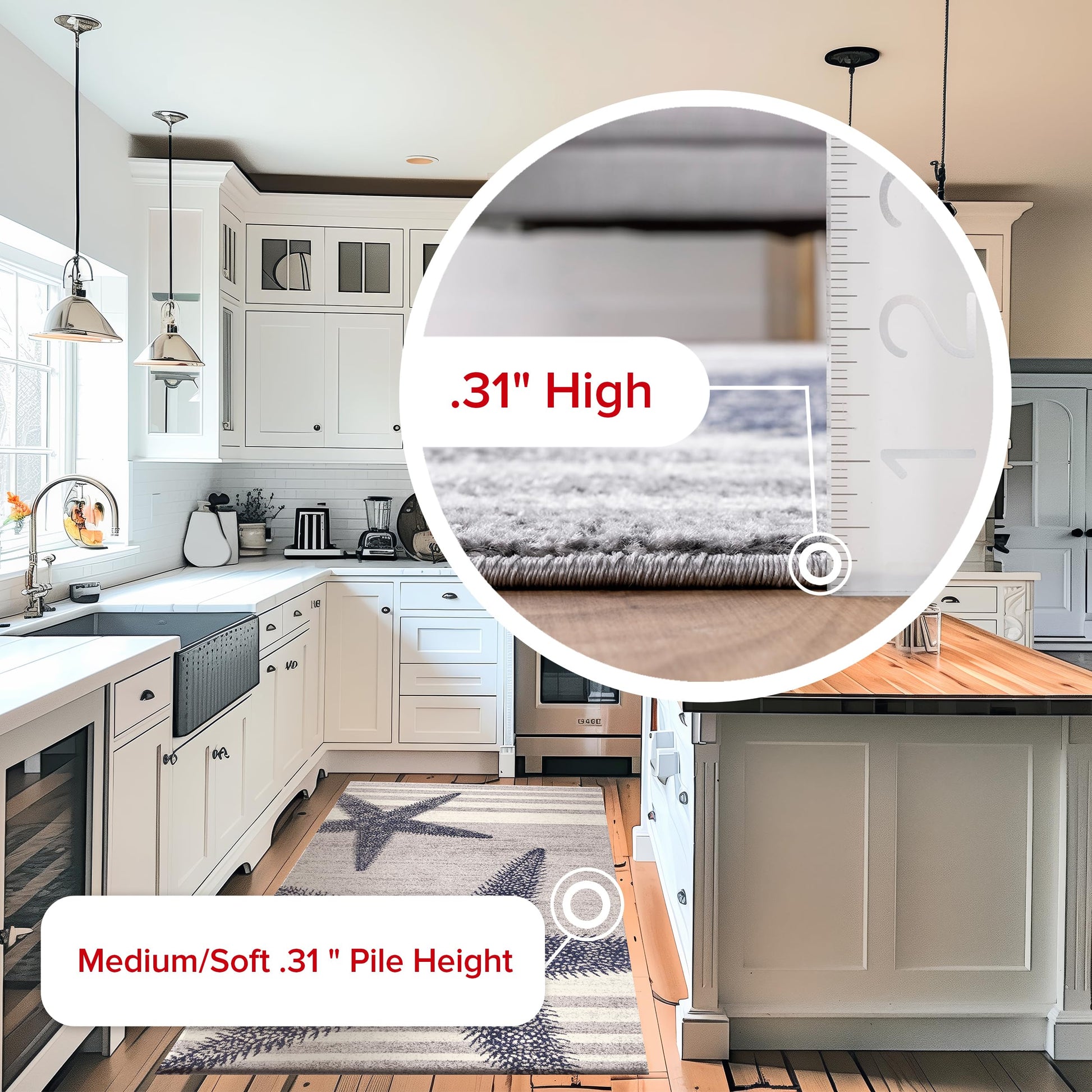 - A medium 0.31” pile height allows for convenient placement in entryways and underneath furniture