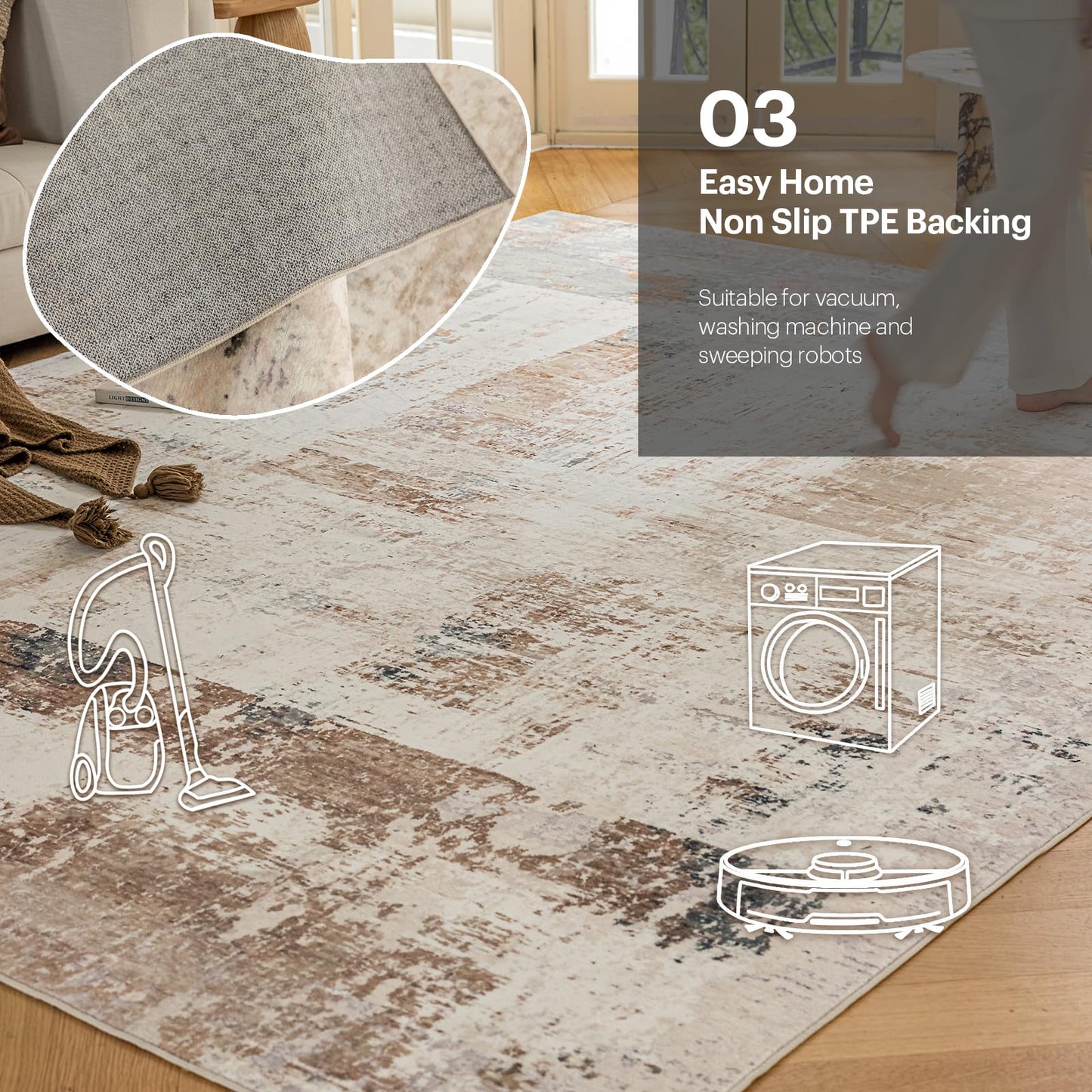 OMERAI 6x9 Washable Area Rug, Brown Modern Abstract Area Rug for Living Room Bedroom, Large Soft Floor Carpet for Bedside Dining Room Kitchen, Non-Slip Indoor Rug- Brown & Beige & Gold