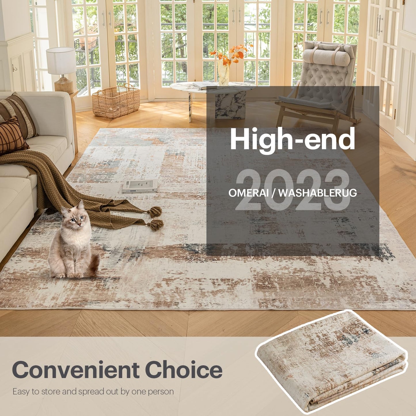 - 【Modern minimalist Design Brown Area Rug】Omerai's designers put their sense of life into their rug designs. We recommend Omerai washable rugs that won't look out of place no matter how you mix and match them. Omerai sells 2×3/4×6/5×7/8×10 rugs, and you can order them on demand.