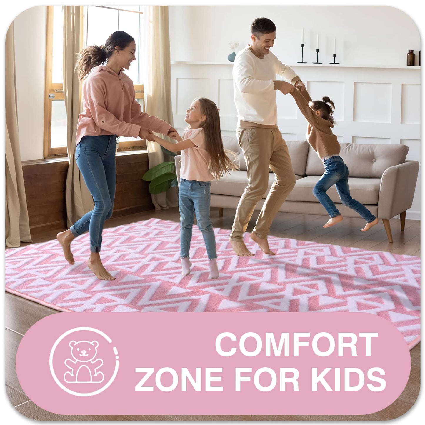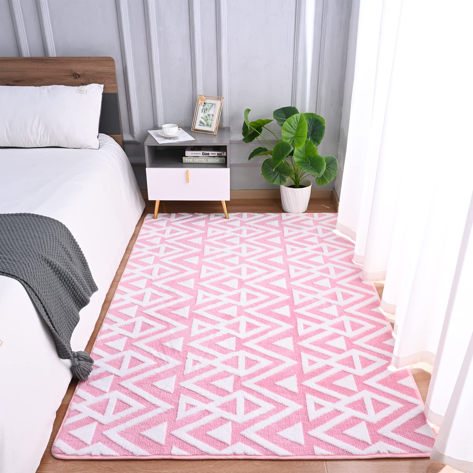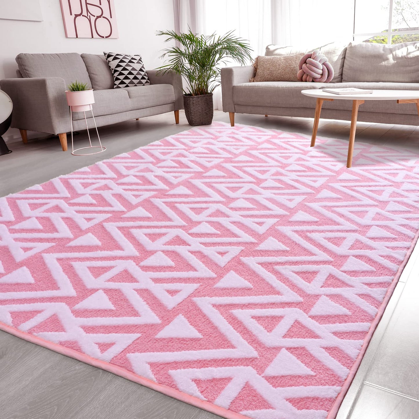 Ompaa Ultra Soft Shaggy Rugs Memory Foam Bedroom Carpet, Pink 6 x 9 Feet, Plush Geometric Textured Area Rugs for Living Room Couch Dorm Bedside Kids Girls Teens Room Nursery Decor Floor Mat