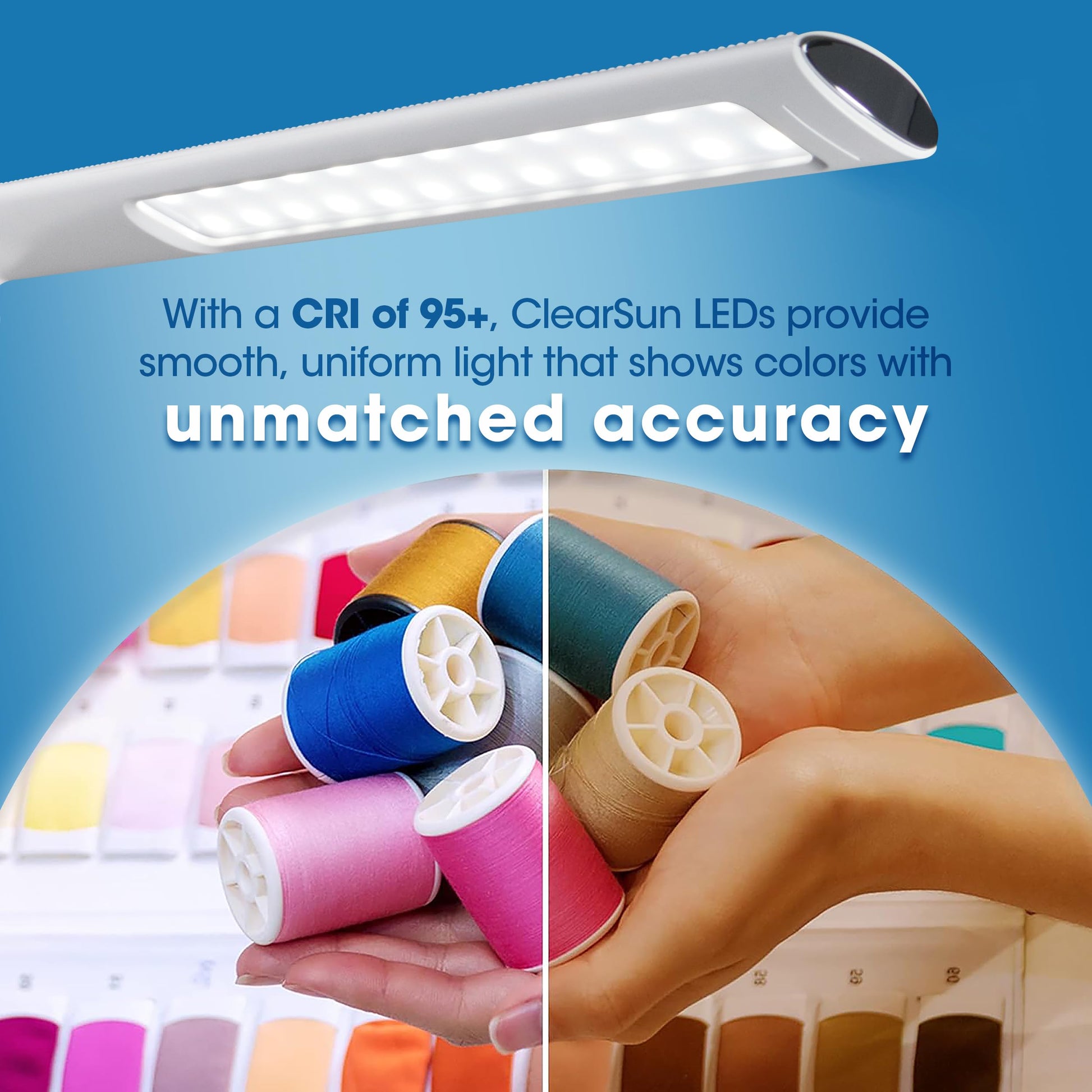 - EYE-FRIENDLY LED LIGHTING: Featuring OttLite’s ClearSun LED technology, this desk lamp is designed to reduce eyestrain by mimicking natural sunlight. With a 95+ Color Rendering Index (CRI), it delivers accurate color representation, perfect for reading, studying, or working long hours under optimal lighting conditions.