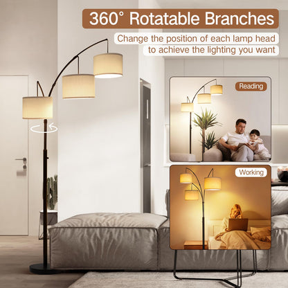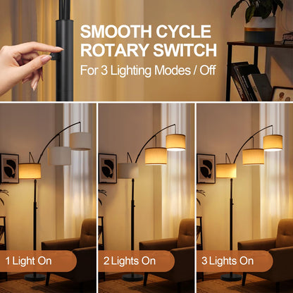 OUTON Arc Led Floor Lamp, Modern Black 3 Light Tall Floor Lamp for Bedroom, 2400lm Mid Century Adjustable Standing Corner Lamps for Living Room Office, 3 LED Bulbs Included, White Lampshade