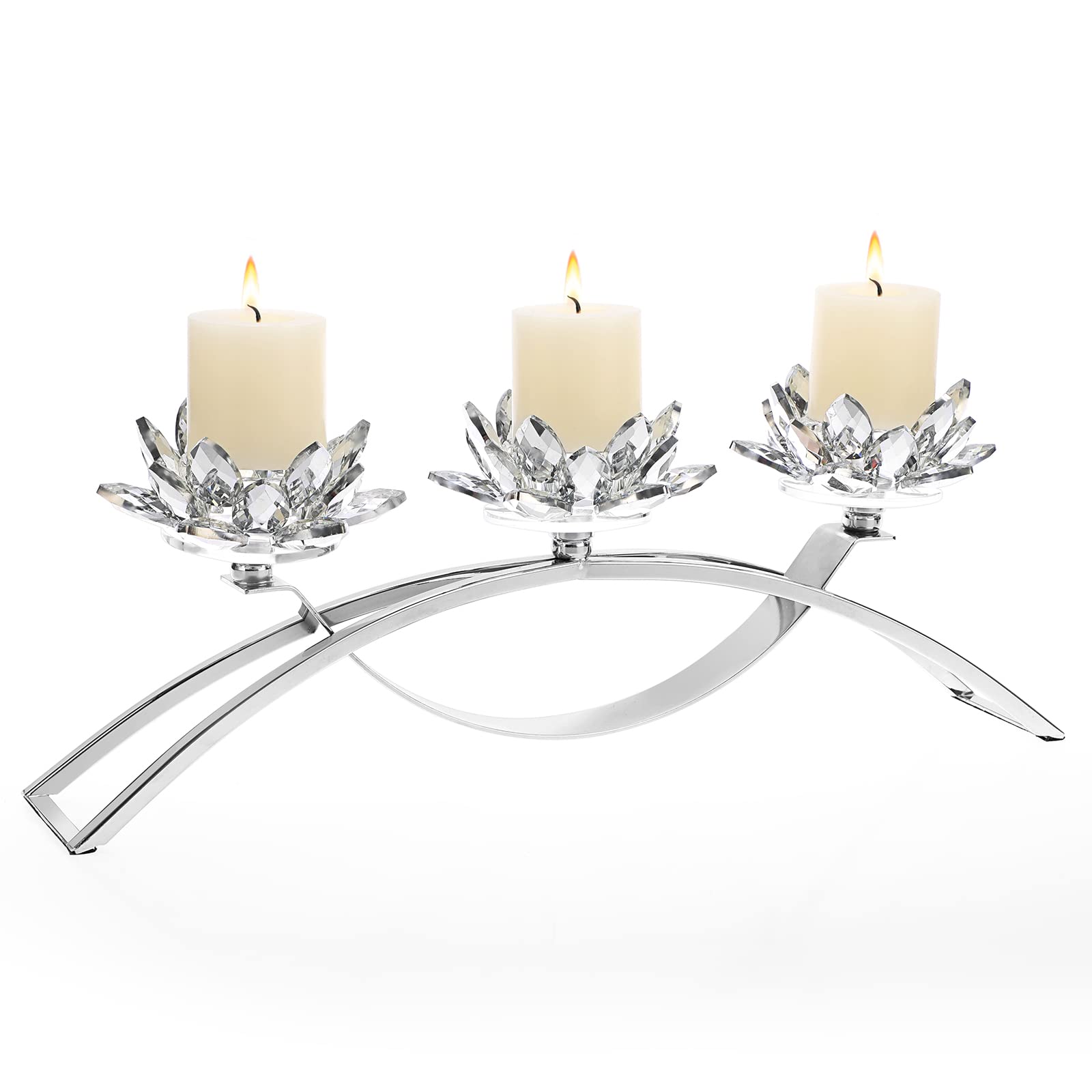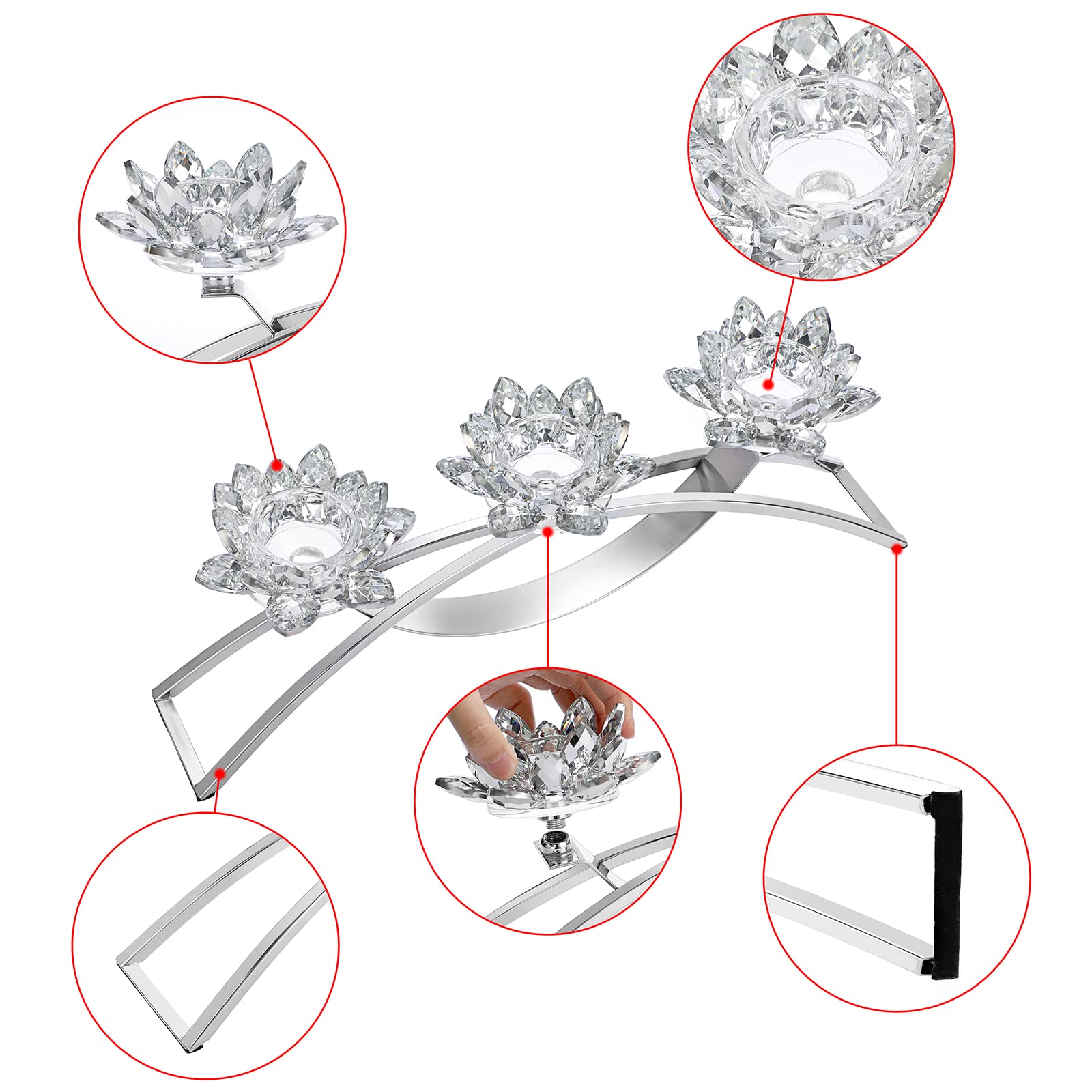 - 3-Arms Crystal Metal Lotus Candle Holders: Solid plated metal arch base is durable and strong enough to support 3 lotus votive candle holders stably, creative 3 lotus flower design looks eye-catching, will be an exquisite and attractive crystal lotus flower ornament to your space.