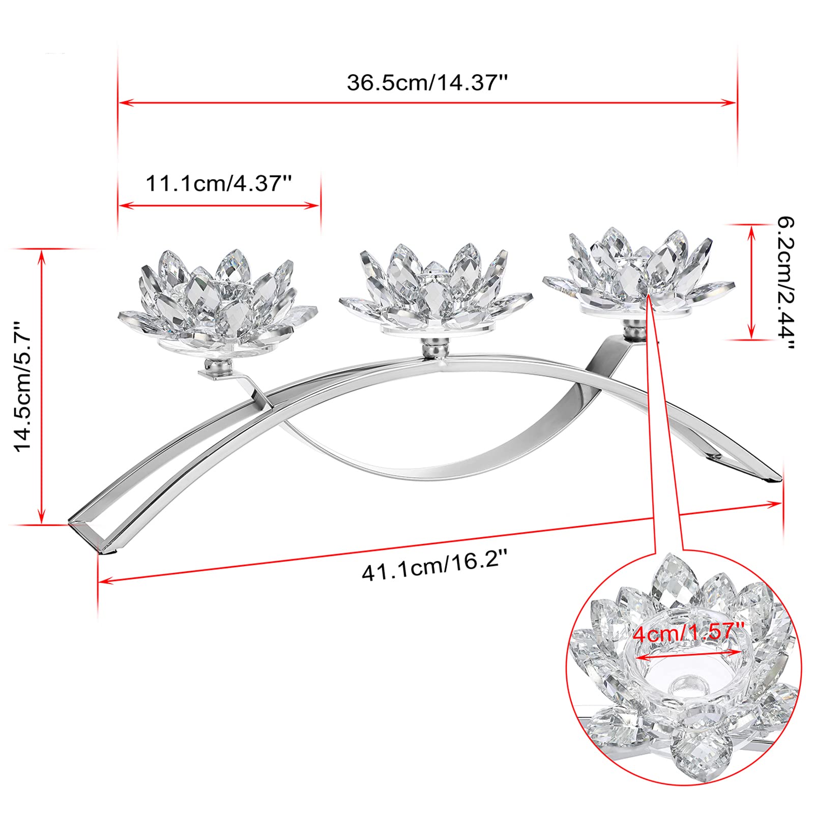 - NOTICE: Only fitting for candles (tea light candle, pillar candles, votive candle, etc) with a diameter less than 4cm/1.57”!! Overall Dimension of this 3-Arms Lotus Candle Stand (Length x Height) is 41.1cm x 14.5cm / 16.2” x 5.7” and each lotus candle holder (Width x Height) is 11.1cm x 6.2cm / 4.37” x 2.44”.
