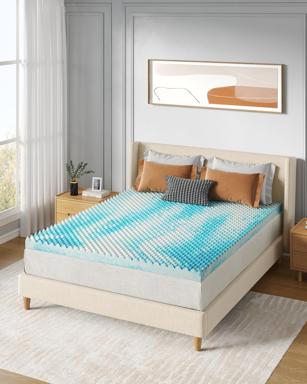 - Stay Cool All Night: The queen size egg crate mattress topper, made with cooling gel-infused memory foam, features a ventilated design, keeping your bed cool and fresh throughout the night. The cooling gel helps maintain a comfortable temperature by optimizing airflow, providing a refreshing and uninterrupted sleep experience. Enjoy the perfect balance of support and temperature regulation so you wake up energized and ready for the day with this breathable egg crate foam mattress topper.