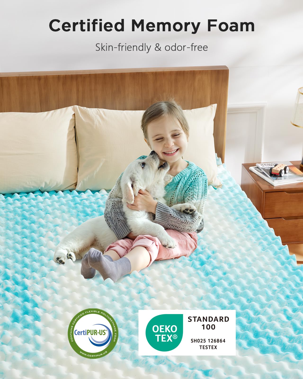 - Certified Quality: Our cooling foam topper meets the highest standards of quality with CertiPUR-US, OEKO-TEX, and amfori BSCI certifications. Purchase with confidence knowing that the materials of our egg-shaped topper are skin-friendly and odor-free for a better night’s sleep.