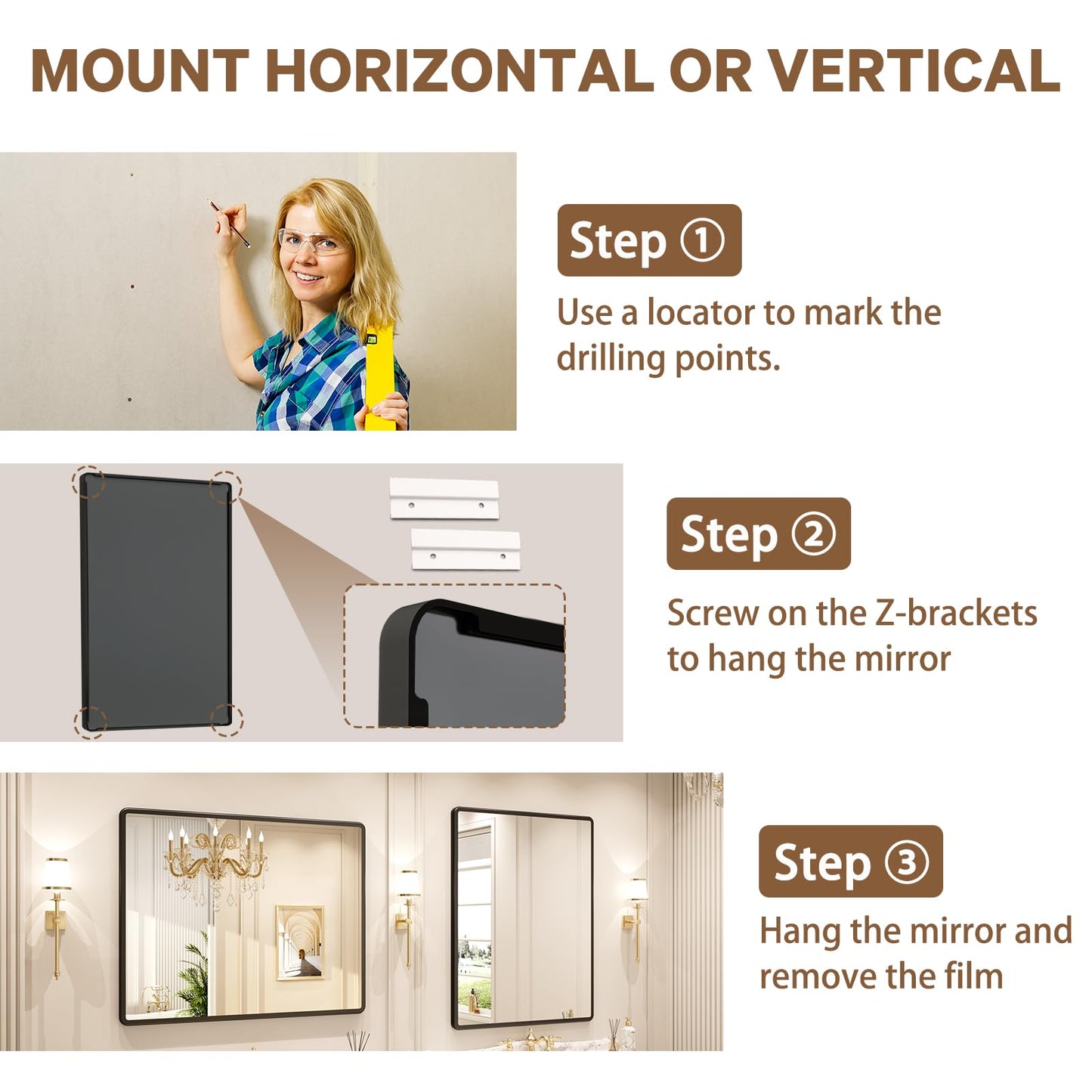 - 【Easy Sturdy Installation】The bathroom mirror with hanging design on the frame back to hang horizontally or vertically. Super easy to install with Z-bar sturdy wall bracket, ensures the mirror rests more securely against the wall. (Hardware included);