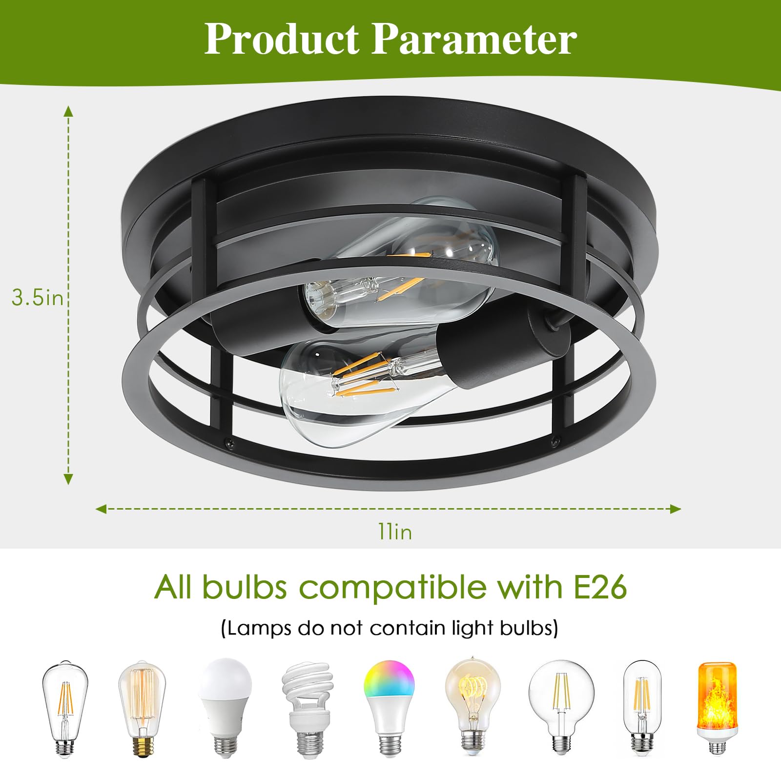 - Recommended Bulbs -This ceiling lighting fixture requires 2 x E26 base bulbs (Max 60W). Compatible with LED bulbs, Incandescent or CFL bulbs. Easy installation, just screw the E26 bulbs you desired into the ceiling mount(Bulbs NOT included)