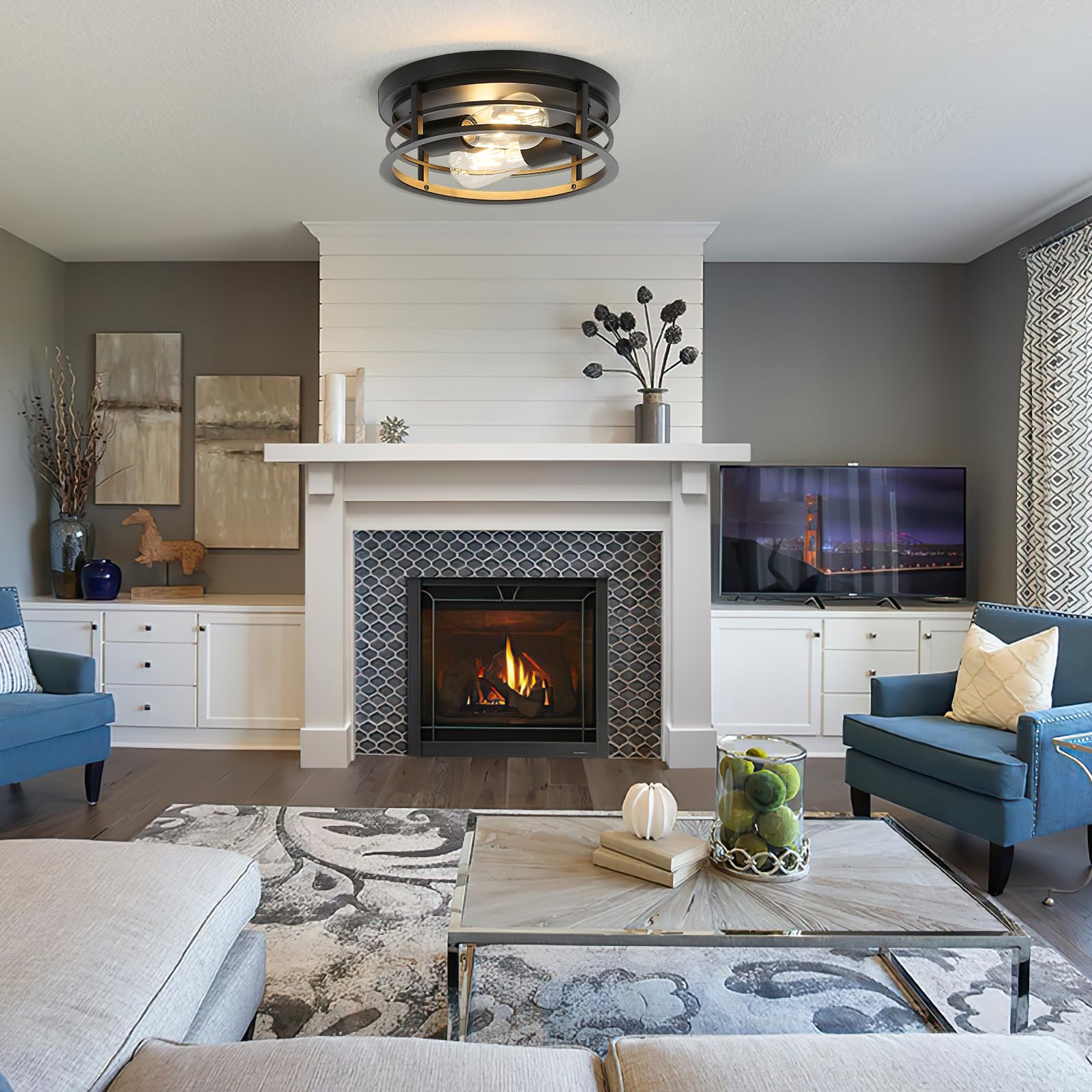 - Easy Installation -This modern farmhouse flush mount ceiling lamp comes with all hardware. Just take a few minutes you can finish the installation. Please contact us when you have any problems