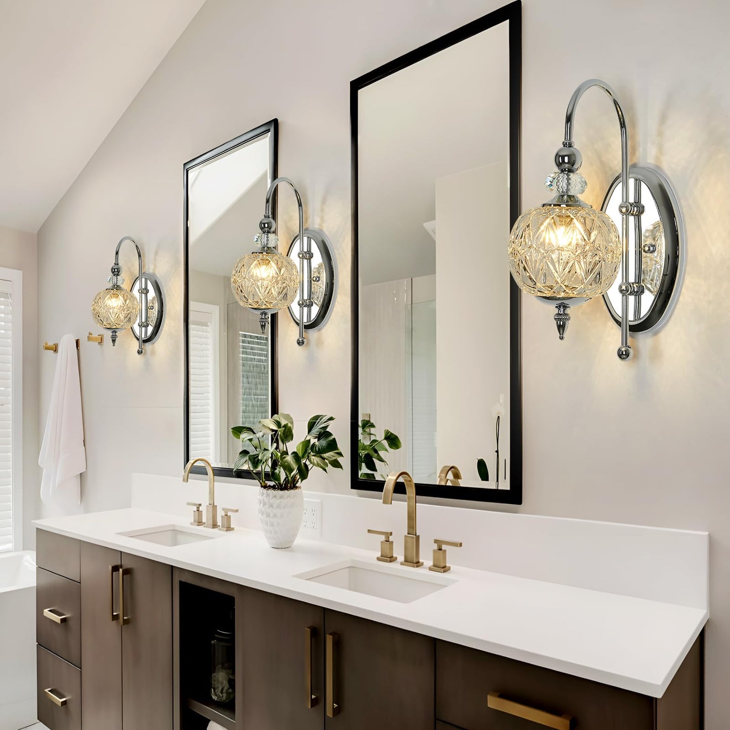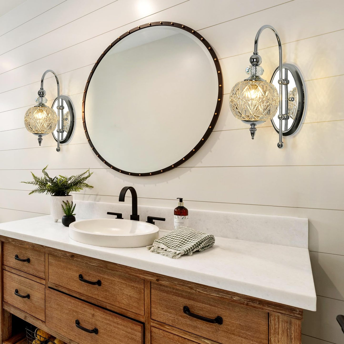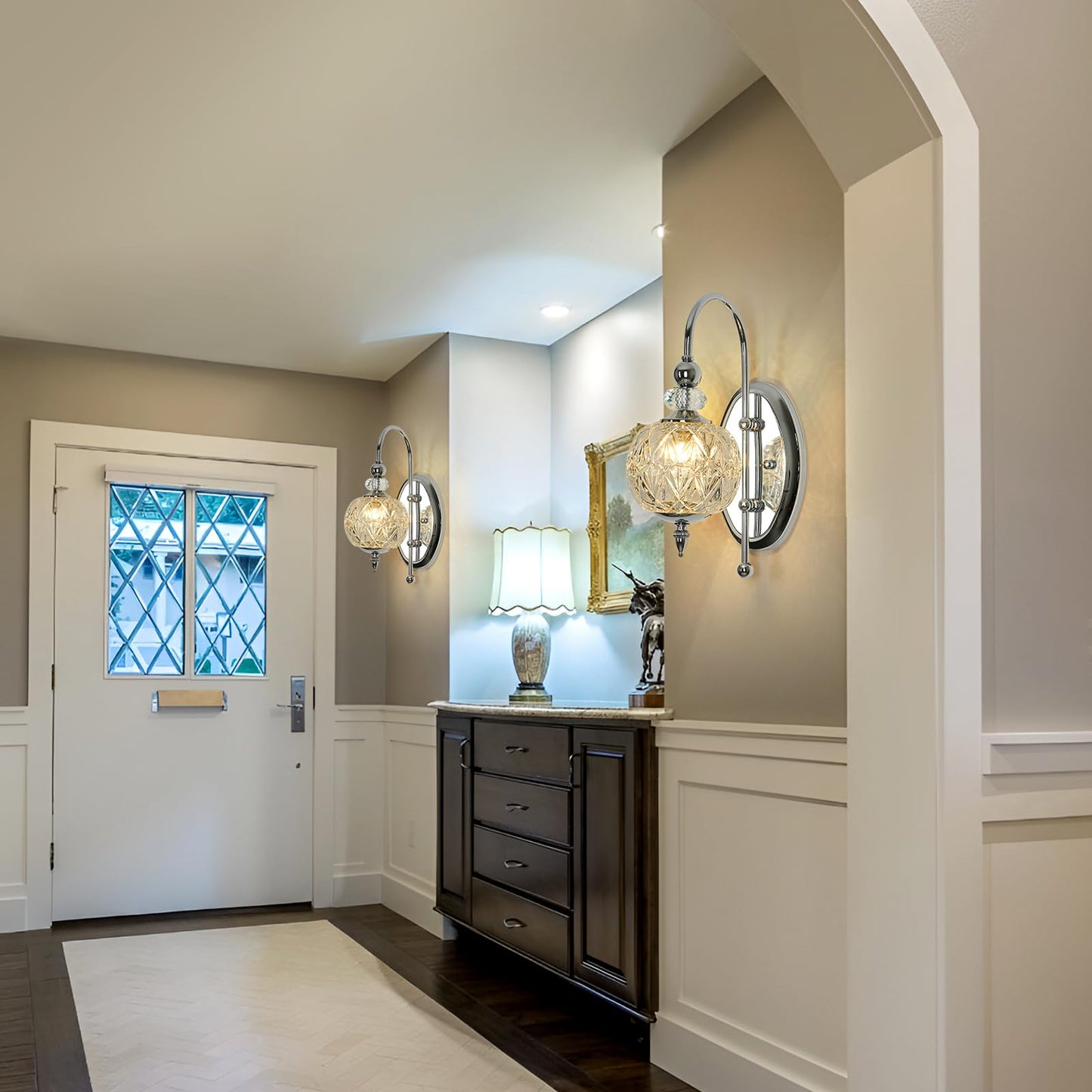 Piepooye Modern Polished Chrome Wall Sconce with Glass Globe Shade Mid Century G9 Bulb Vanity Light Indoor Wall Light for Bathroom Bedroom Farmhouse Living Room Hallway