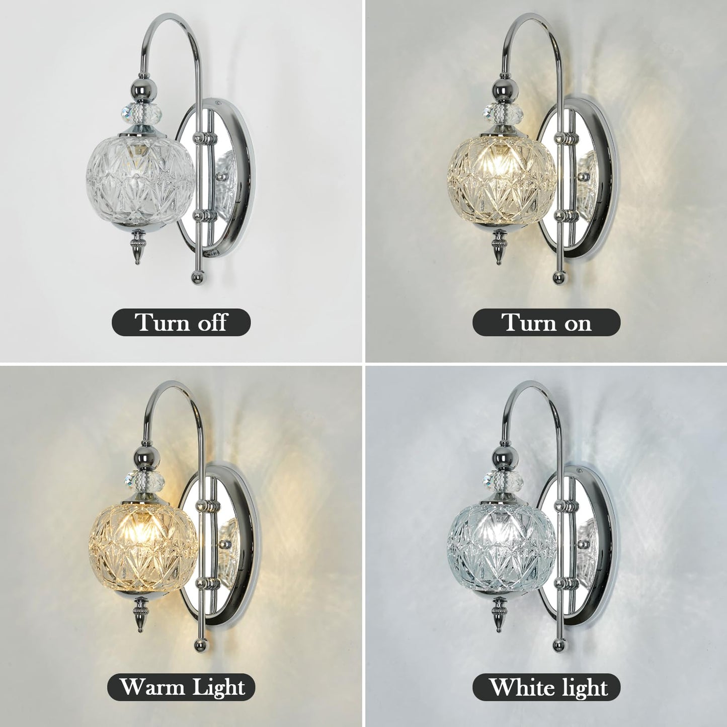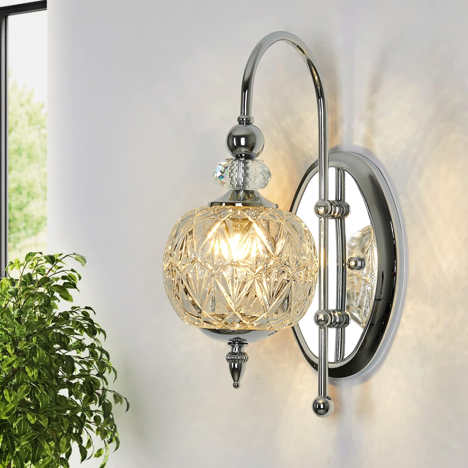 - Durable Silver Vanity Light : This bedside wall lamp is sturdy and durable with thick glass lampshade and metal parts treated exterior with Magnetic Baking varnish. And metal parts are not easy to corrode and oxidize.Attention: Please note the size. The glass is broken, please email me and I will replace it for you...
